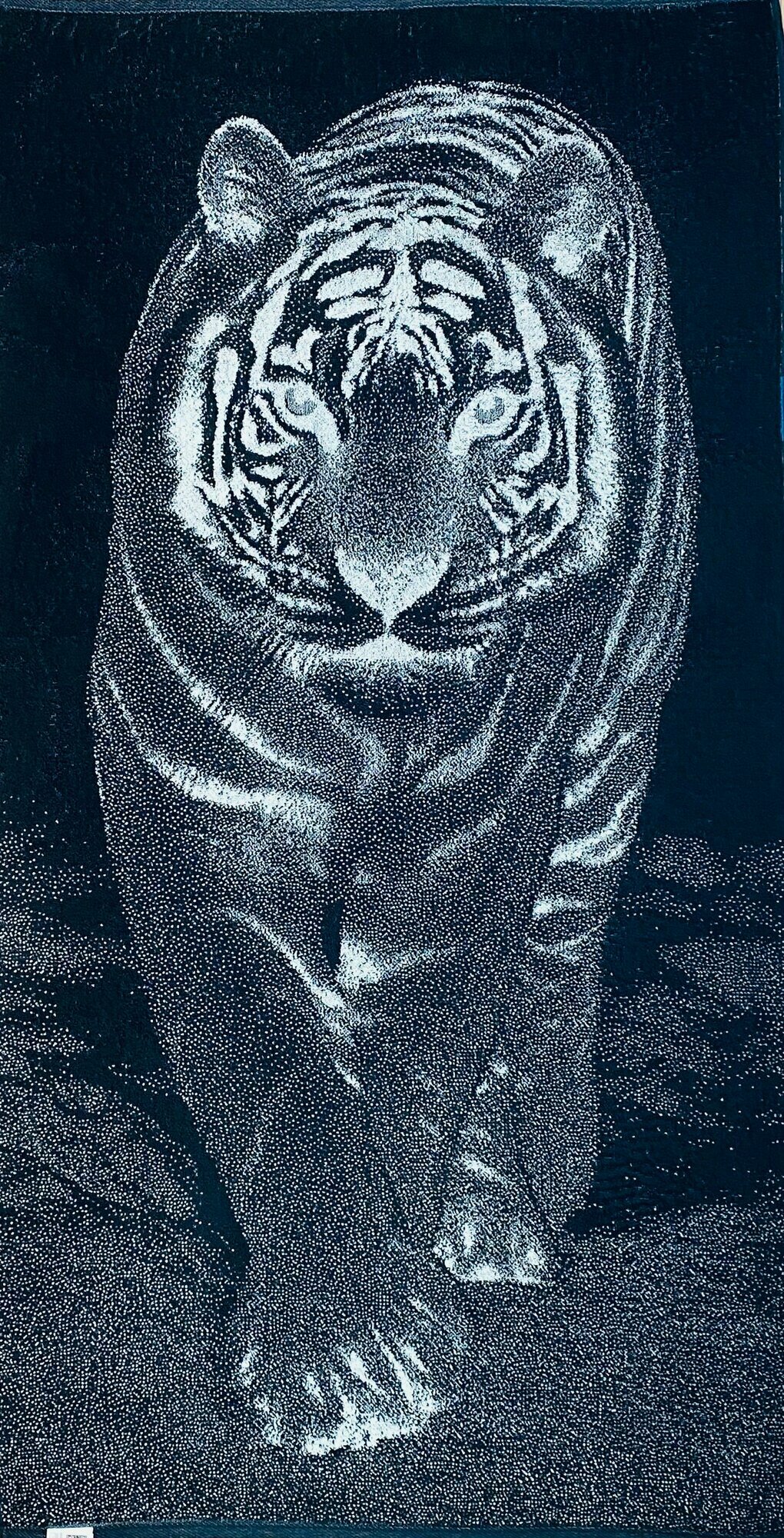 Полотенце махровое банное большое для мужчины Белый тигр 100 х 160 см