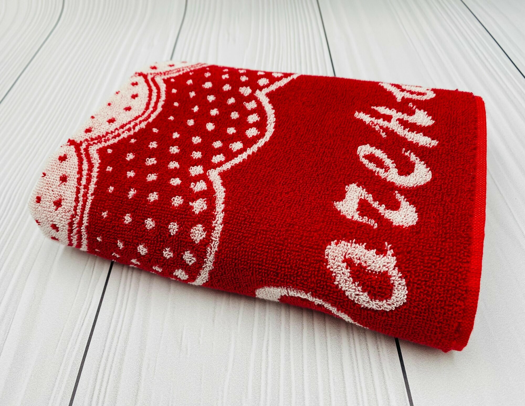 Полотенце махровое в подарок Бабушке на День Рождения, на 8 марта, на Новый год 50*100 см Красное