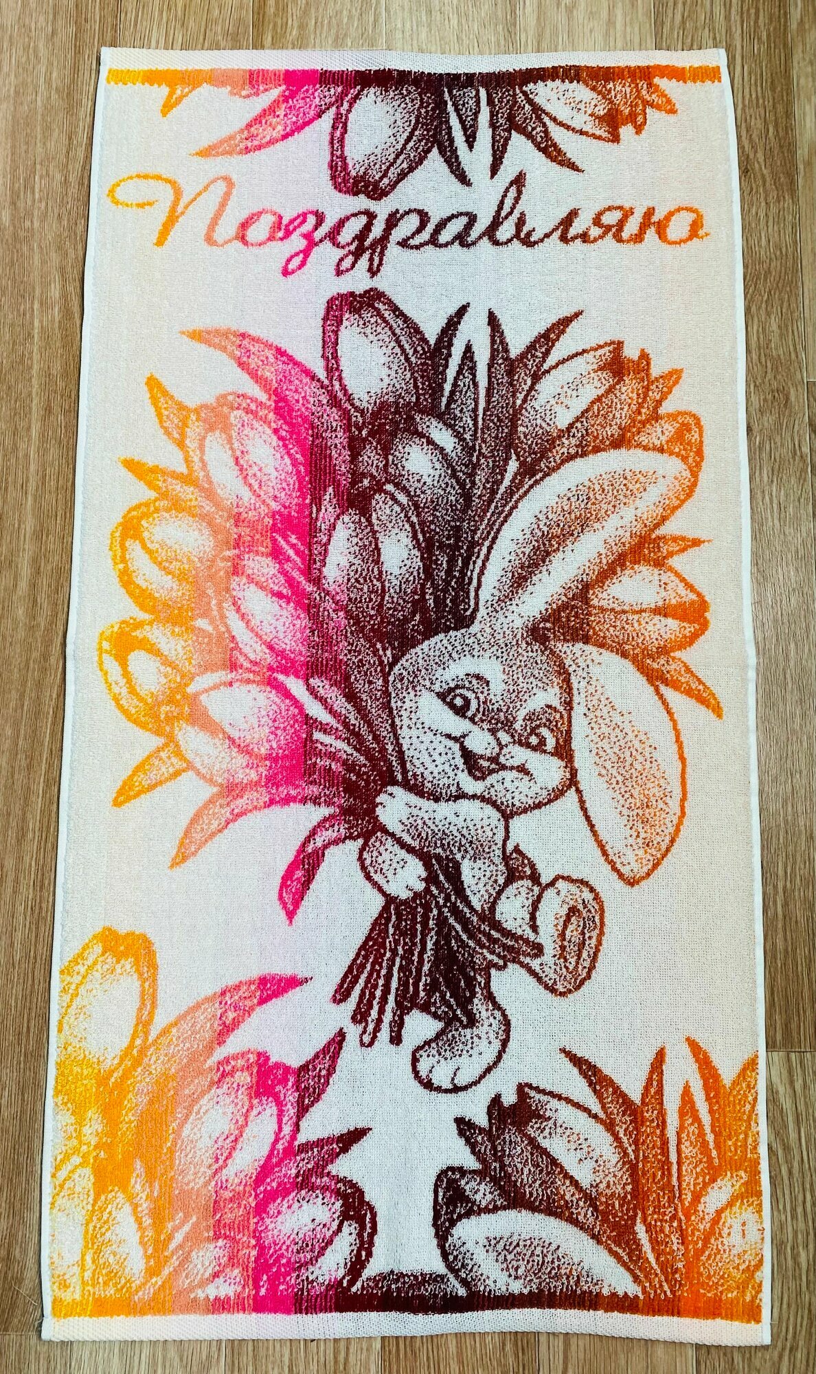 СохранитьПолотенце Махровое в подарок женщине, маме, бабушке, сестре на 8 марта, на День рождения "Поздравляю, Зайка" 50х90 см интересное: