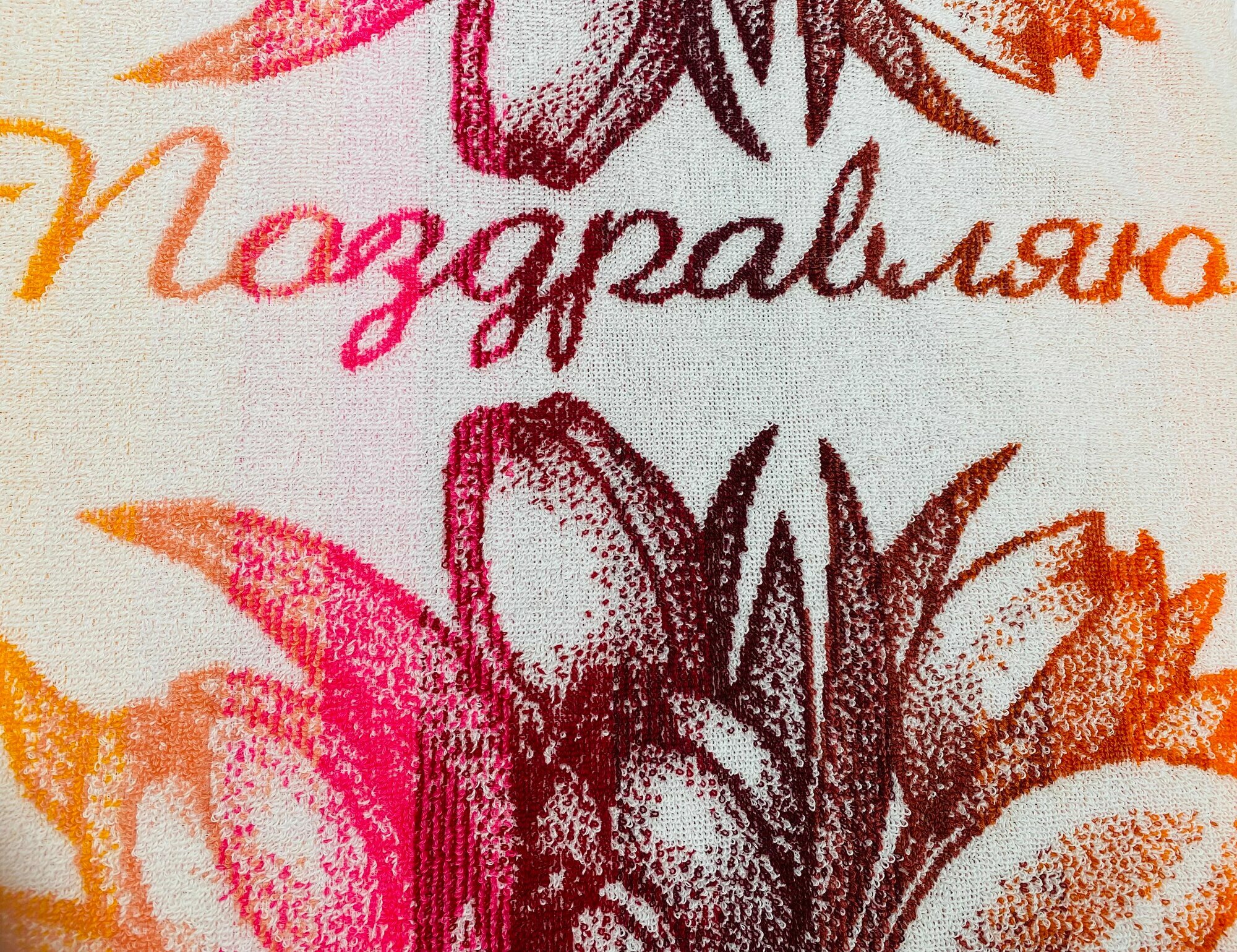 Полотенце Махровое в подарок женщине, маме, бабушке, сестре на 8 марта, на День рождения Поздравляю. Пион. 50х90 см