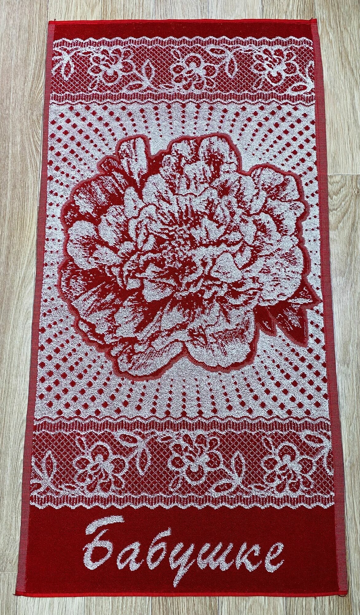 СохранитьПолотенце махровое в подарок Бабушке на День Рождения, на 8 марта, на Новый год 50*100 см Красное интересное: