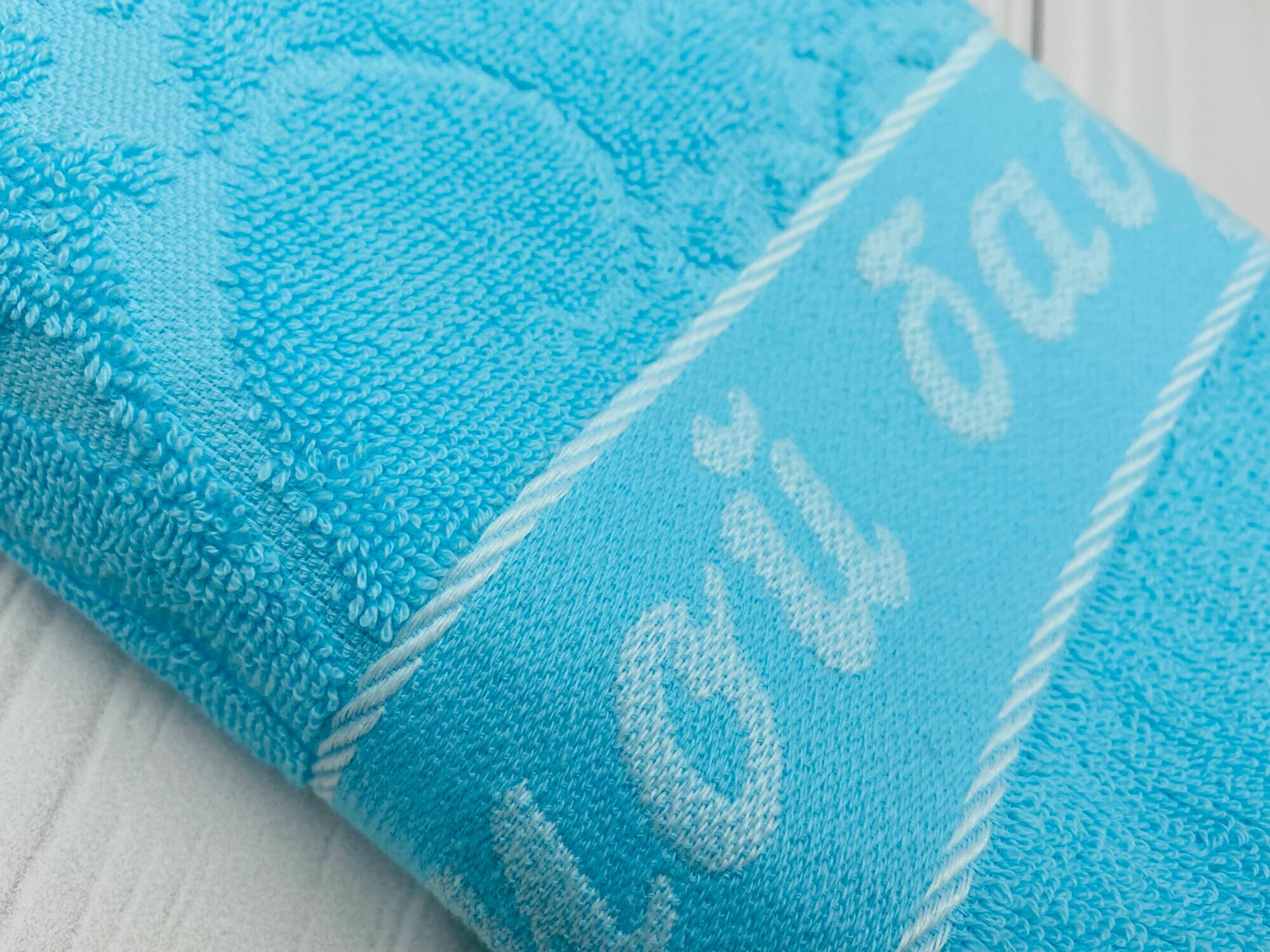 Полотенце махровое в подарок женщине на 8 марта, на День рождения, Новый год "Любимая Теща" Голубое 50*90 см