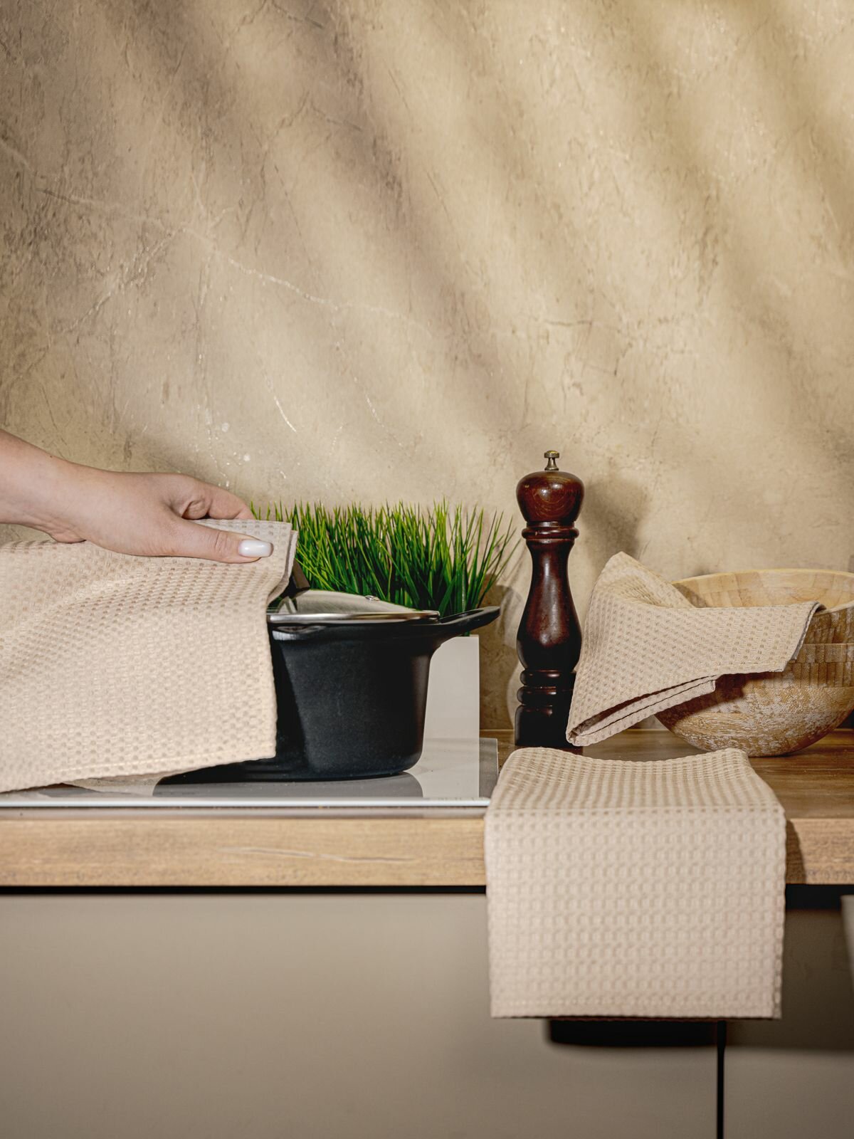 Набор кухонных полотенец 40х75, 3 шт, серый, вафельное для кухни, кухонное полотенце