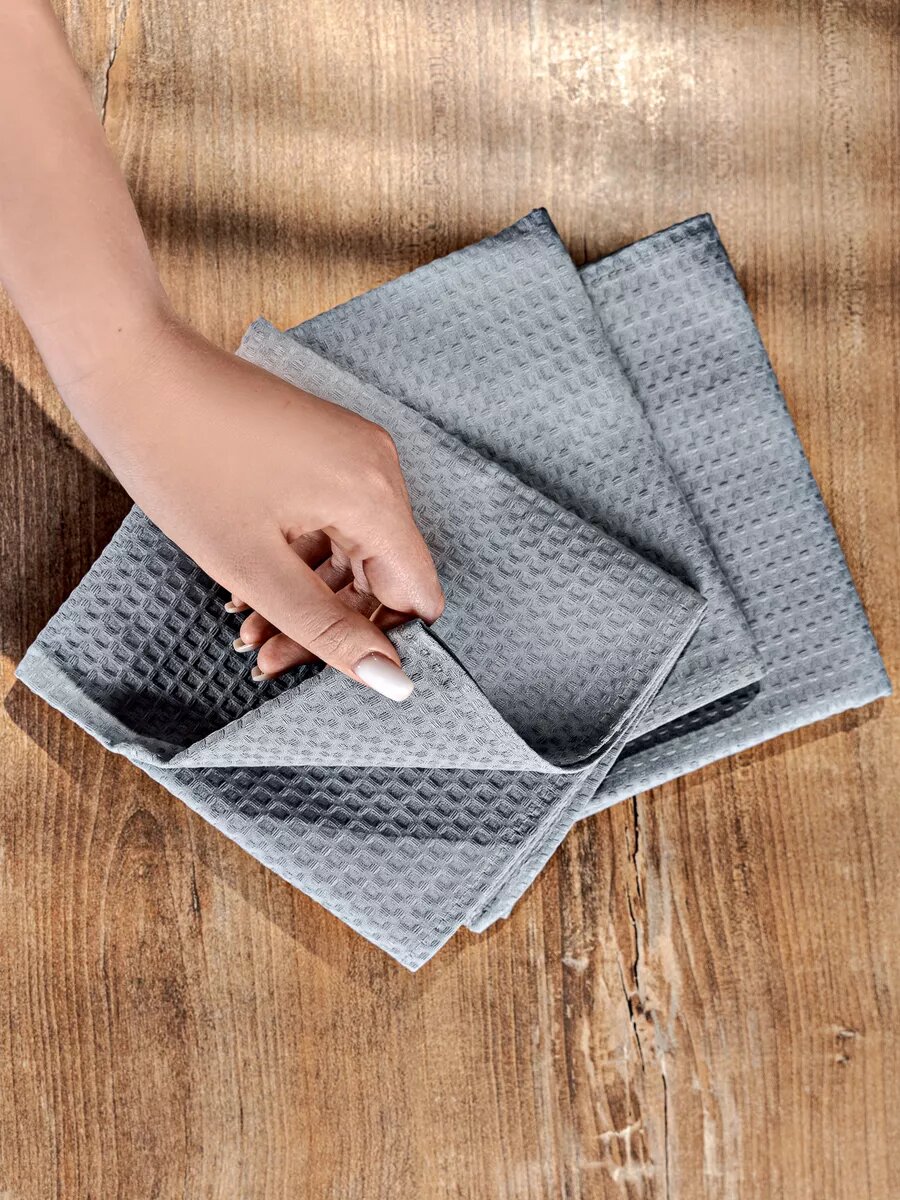 Купить Набор кухонных полотенец 40х75, 3 шт, серый, вафельное для кухни, кухонное полотенце