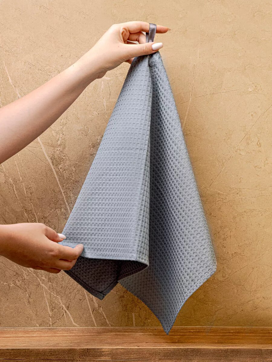 Набор кухонных полотенец 40х75, 3 шт, серый, вафельное для кухни, кухонное полотенце интересное: