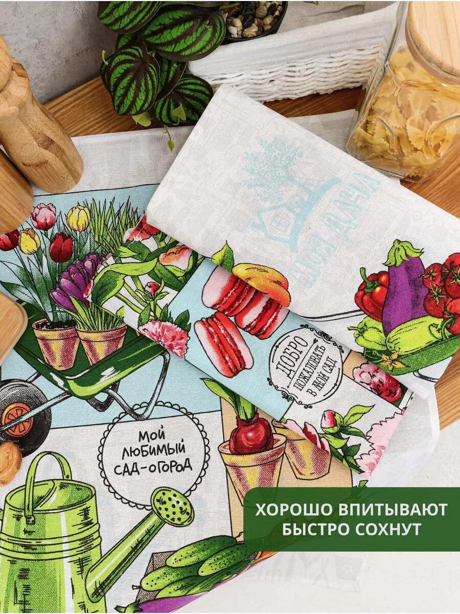 Кухонные полотенца набор 3 шт с растительным принтом