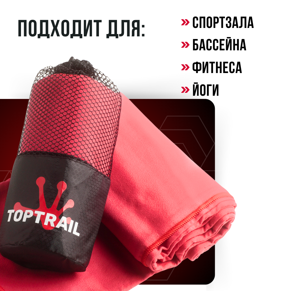 СохранитьПолотенце спортивное из микрофибры TOPTRAIL, 90 х 180, красное, для бассейна / пляжное / банное интересное: