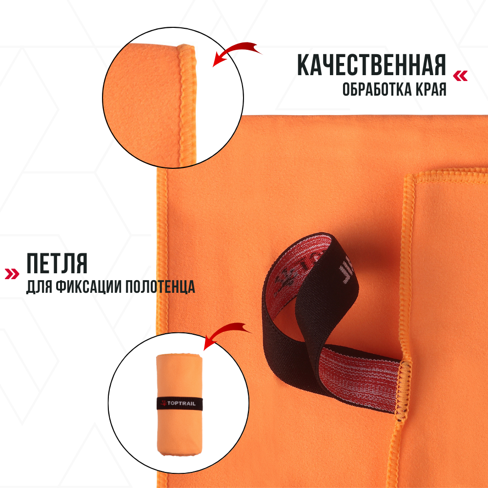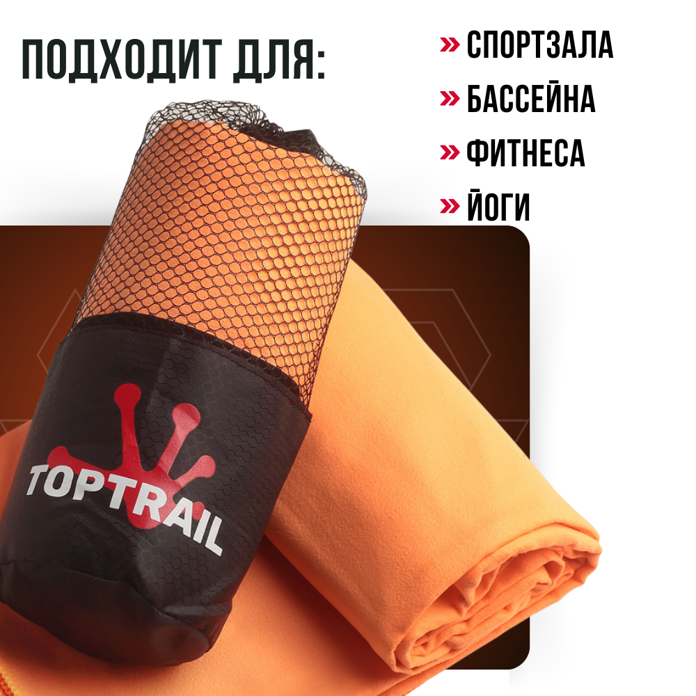 СохранитьПолотенце спортивное из микрофибры TOPTRAIL, 90 х 180, оранжевое, для бассейна / пляжное / банное интересное: