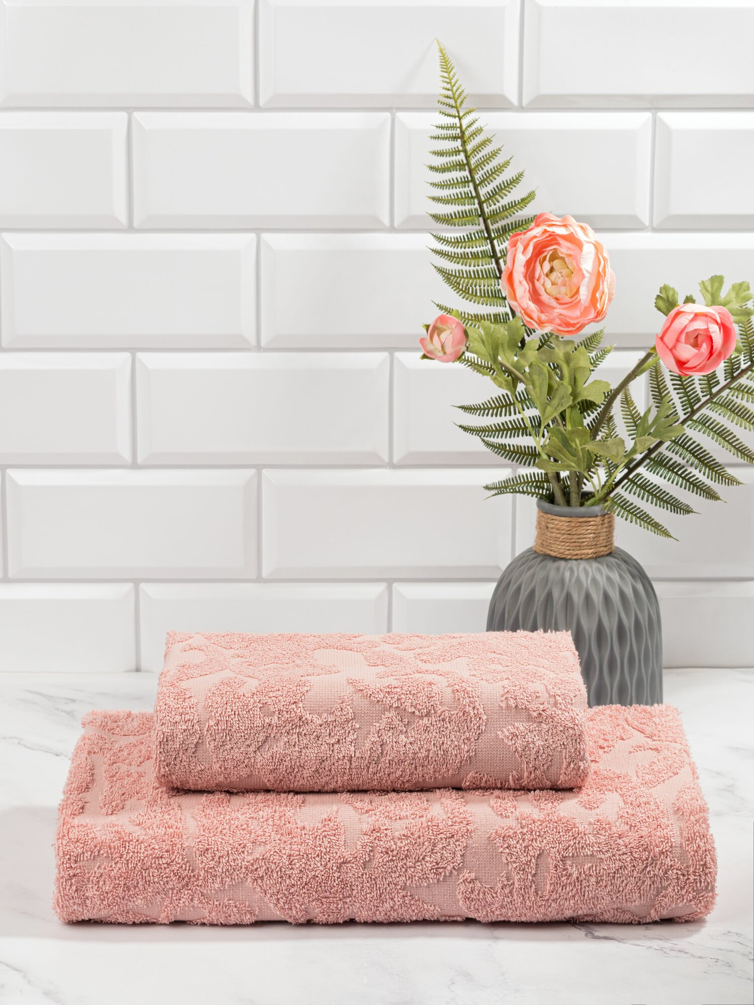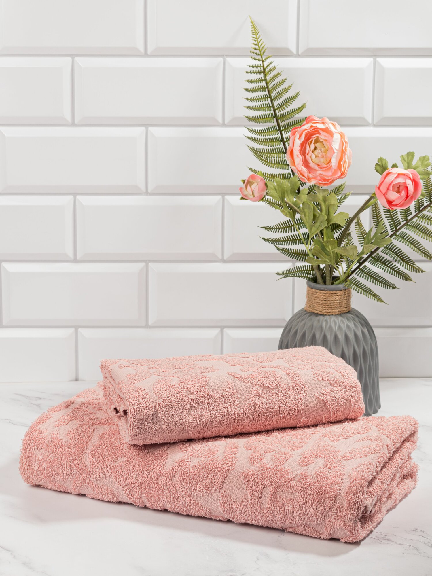 Купить Набор махровых полотенец RICH FAMILY HOME, жаккардовые, розовые, 70x140, 50х90 2 шт