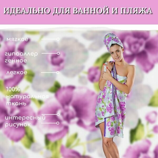 СохранитьПолотенце банное, для сауны, полотенце махровое, орхидея, белый, 100x150 см интересное: