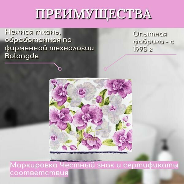 Полотенце для лица, рук, махровое полотенце, орхидея, белый, 50x90