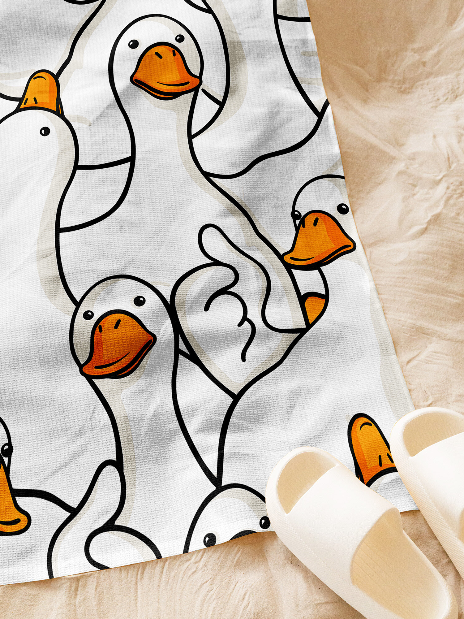 Купить Полотенце пляжное вафельное Гусь обнимусь 70х140 Crazy Getup Белый