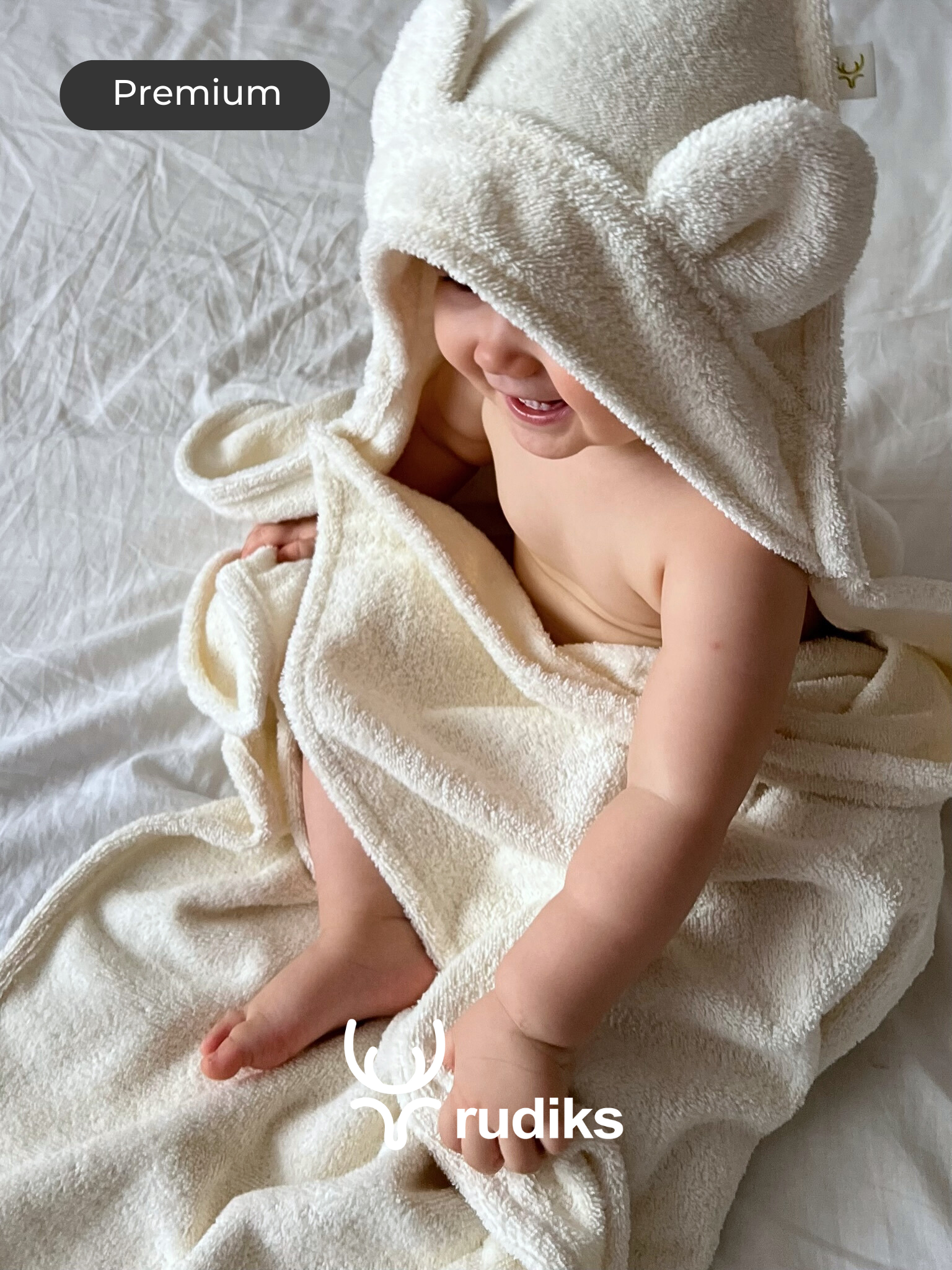 Купить Полотенце Rudiks, для новорожденных, с капюшоном, 100%, хлопок, цвет молочный, 90x90 см