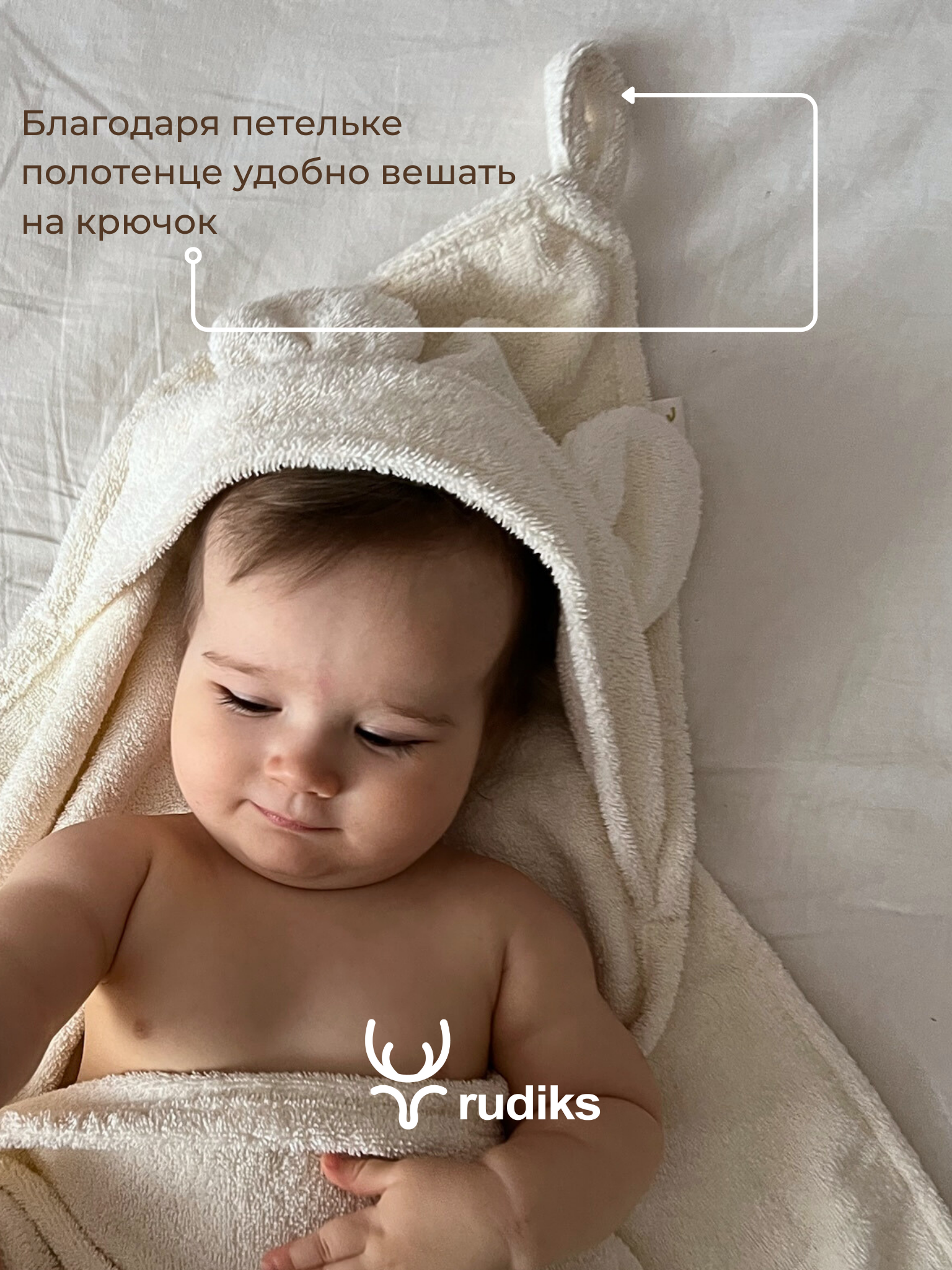 Полотенце Rudiks, для новорожденных, с капюшоном, 100%, хлопок, цвет молочный, 90x90 см интересное: