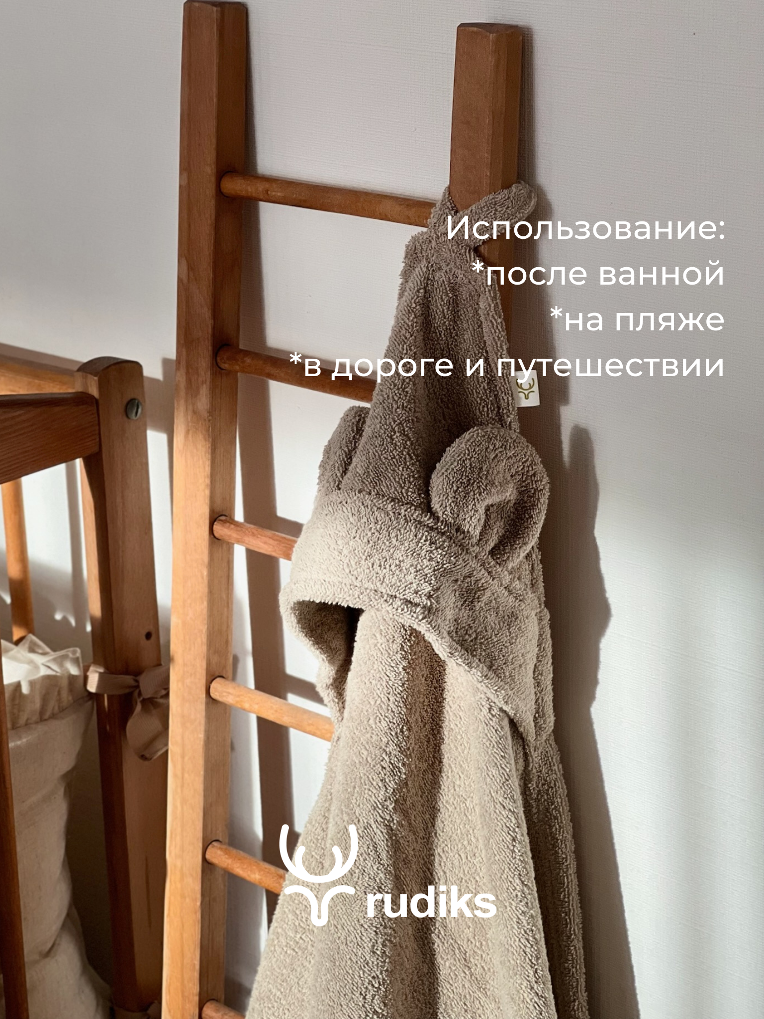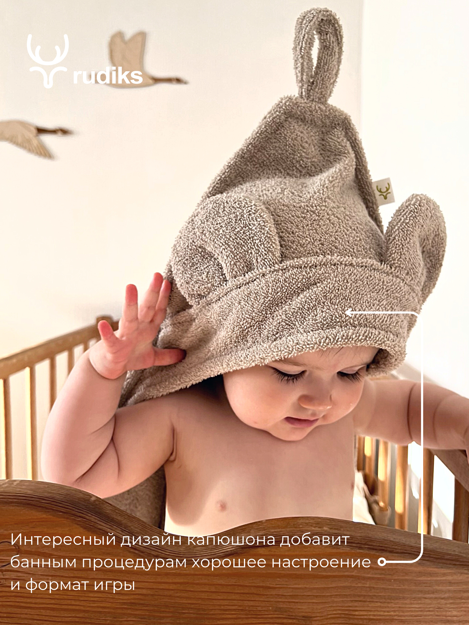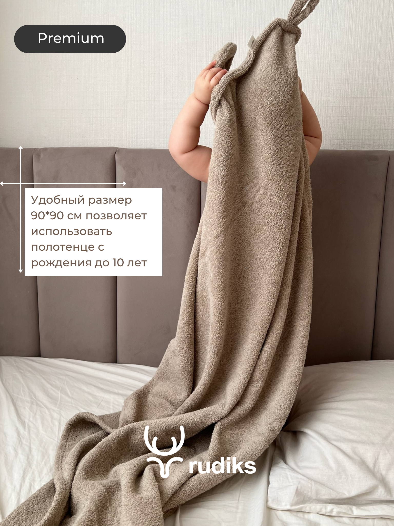 Полотенце Rudiks, для новорожденных, с капюшоном, 100%, хлопок, цвет латте, 90x90 см интересное: