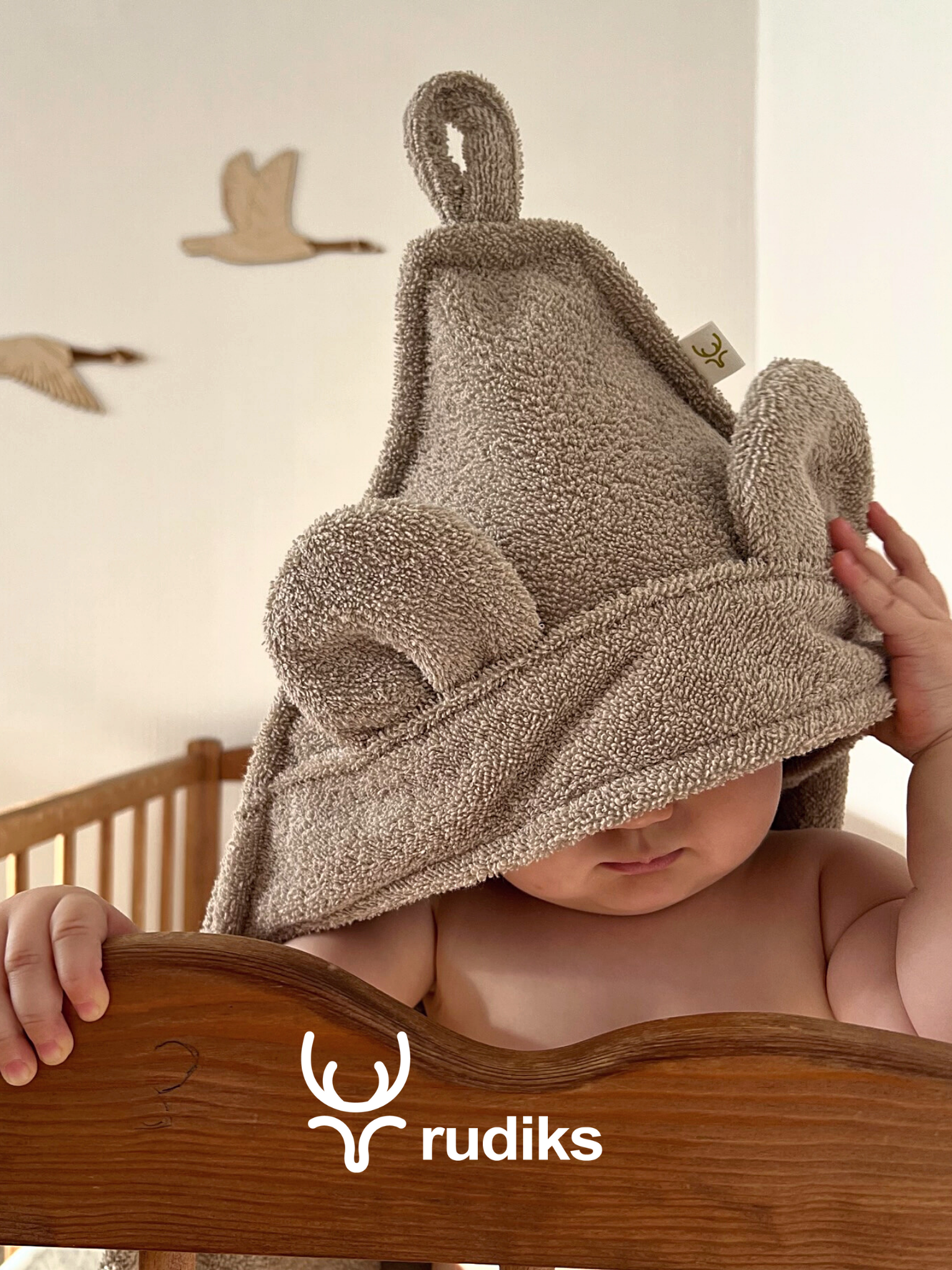 Купить Полотенце Rudiks, для новорожденных, с капюшоном, 100%, хлопок, цвет латте, 90x90 см