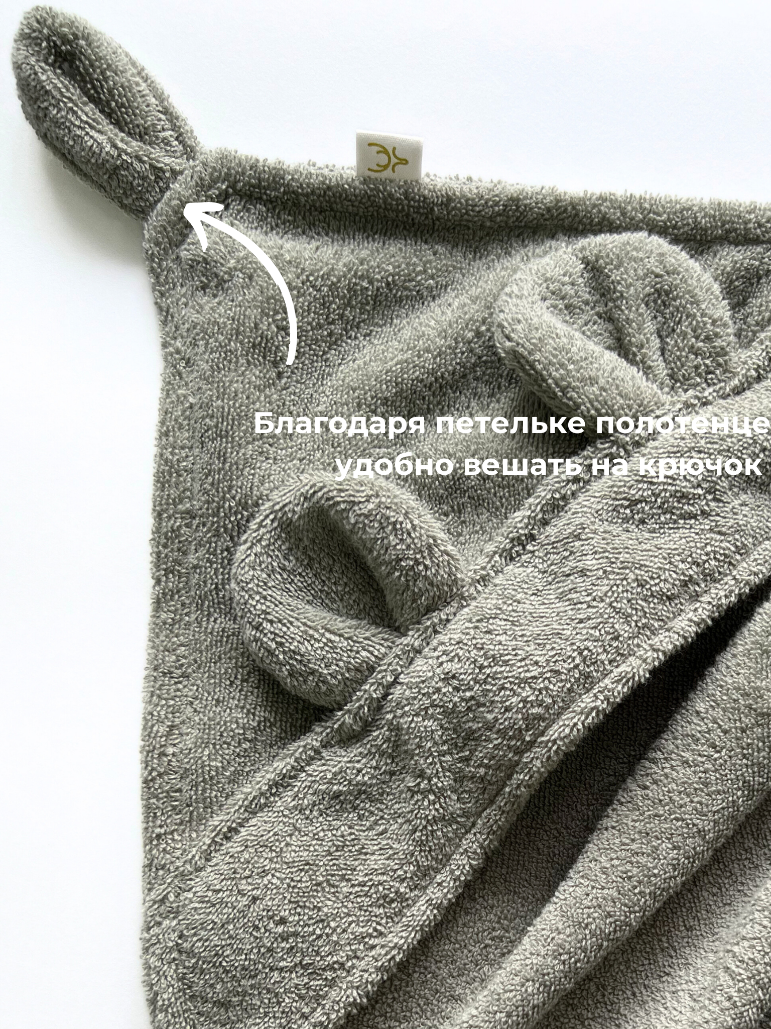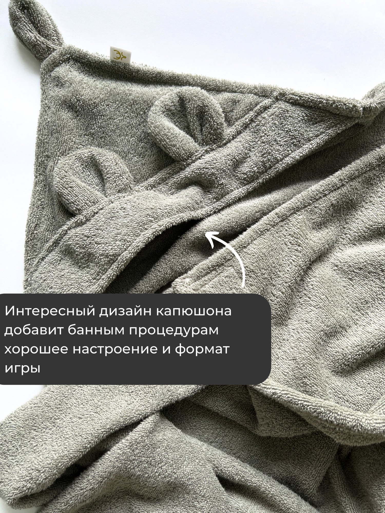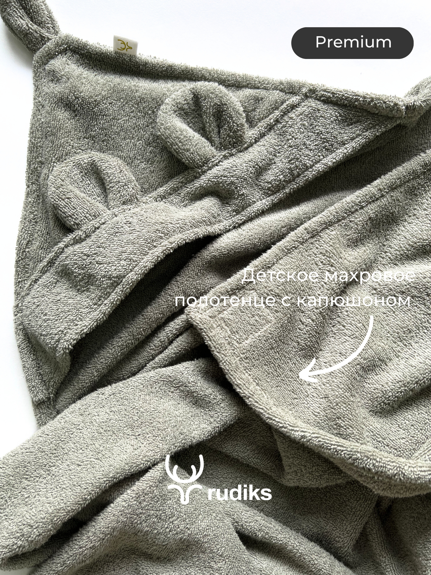 Купить Полотенце Rudiks, для новорожденных, с капюшоном, 100%, хлопок, цвет оливковый, 90x90 см