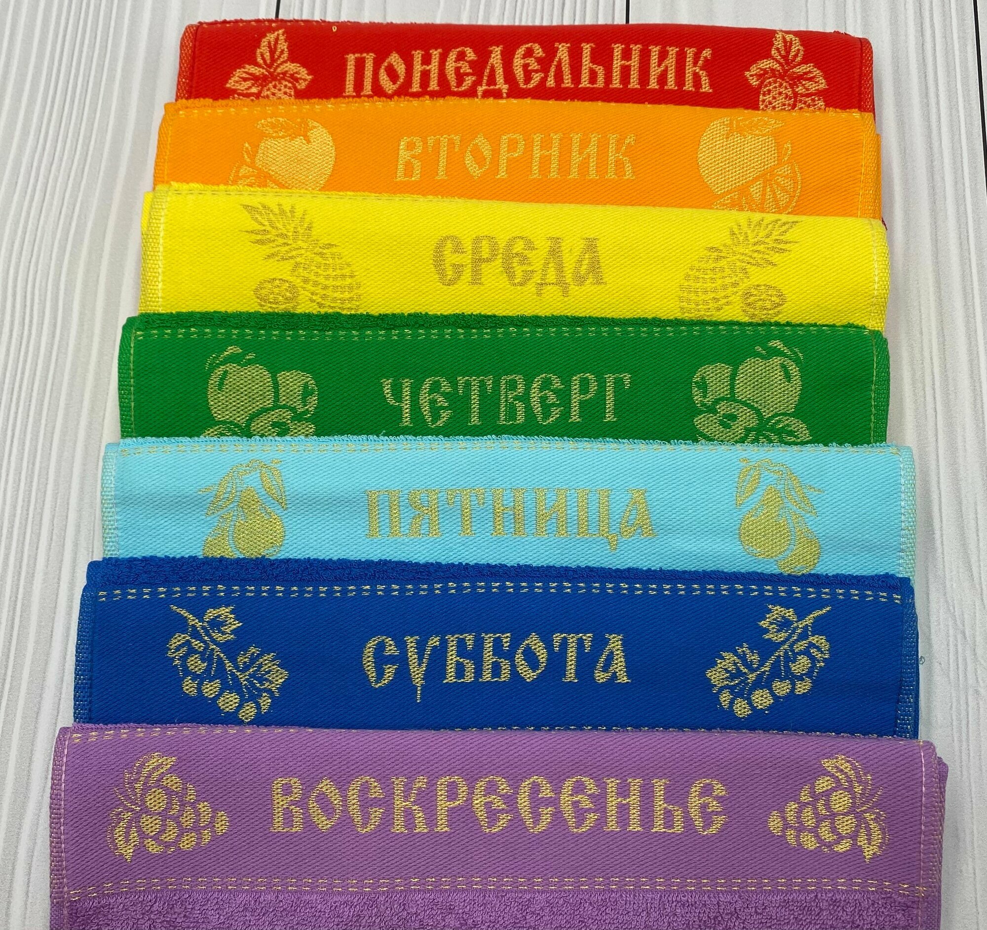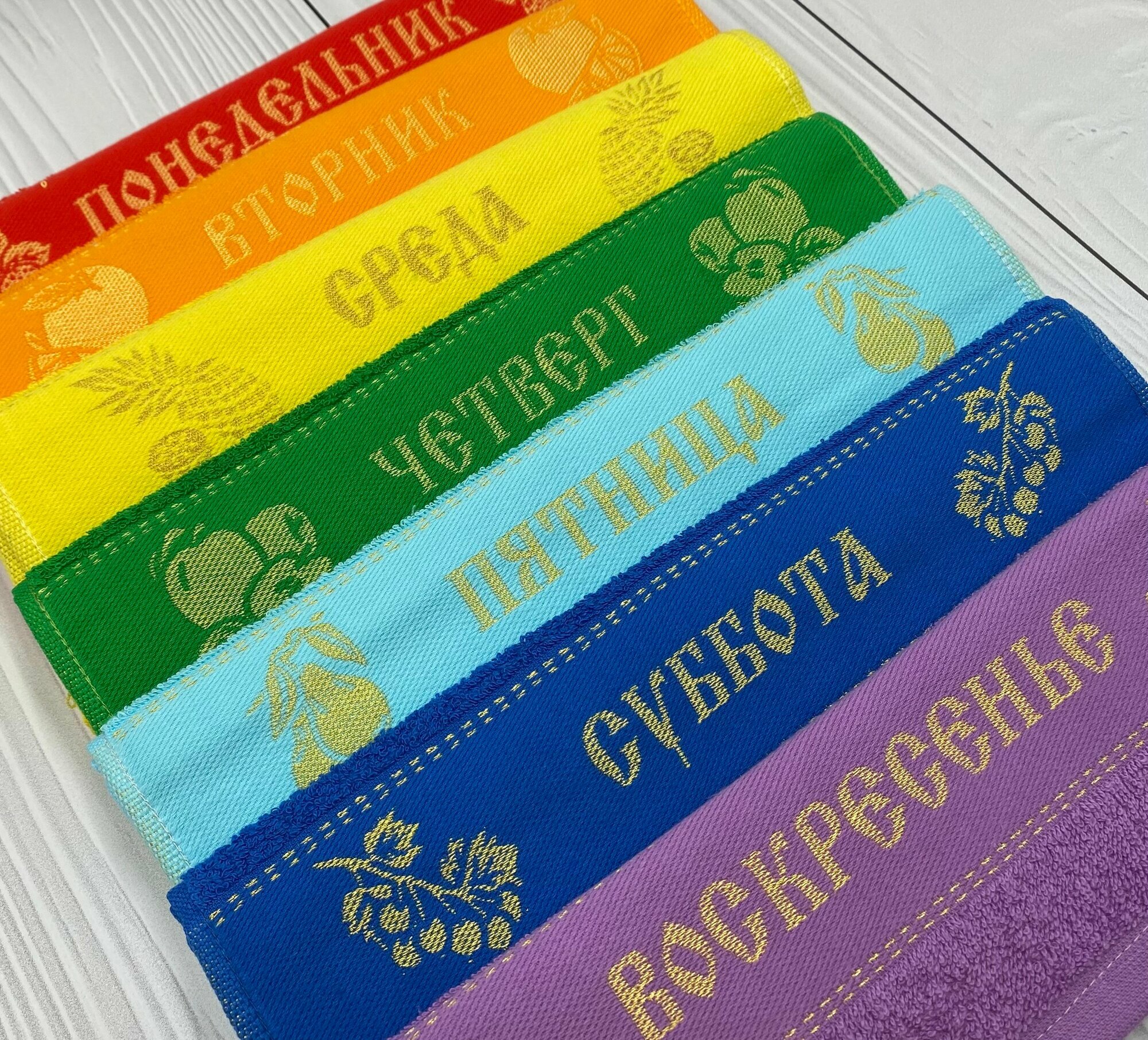 СохранитьНабор кухонных махровых полотенец - 7 шт. 30*60 см "Неделька", Полотенце для рук и лица из 100% хлопка. интересное: