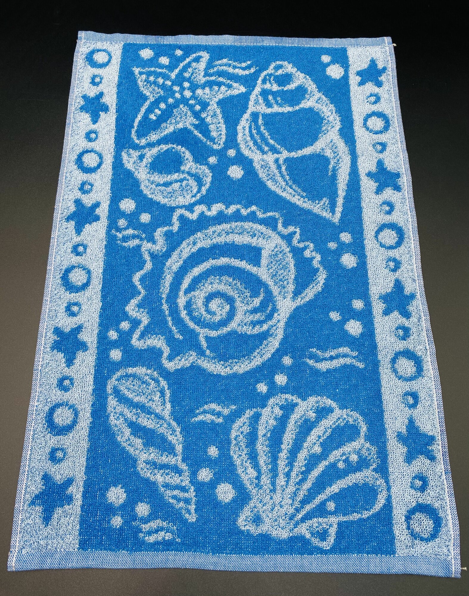 СохранитьПолотенце махровое ручное, кухонное для рук, для посуды Морское дно синее 30*50 см интересное: