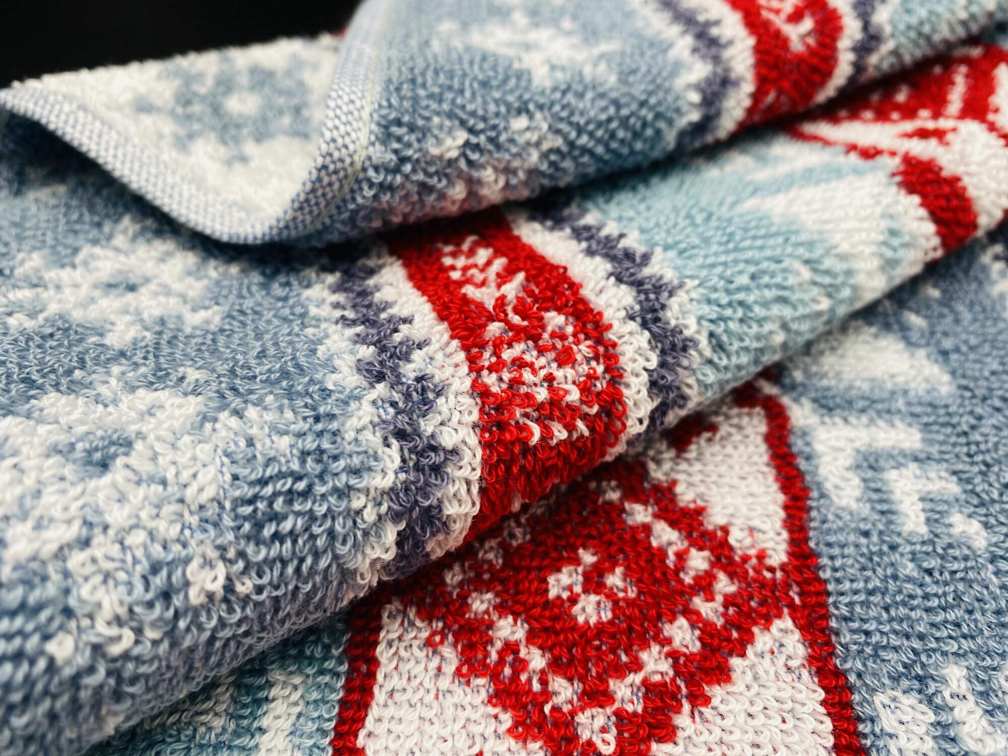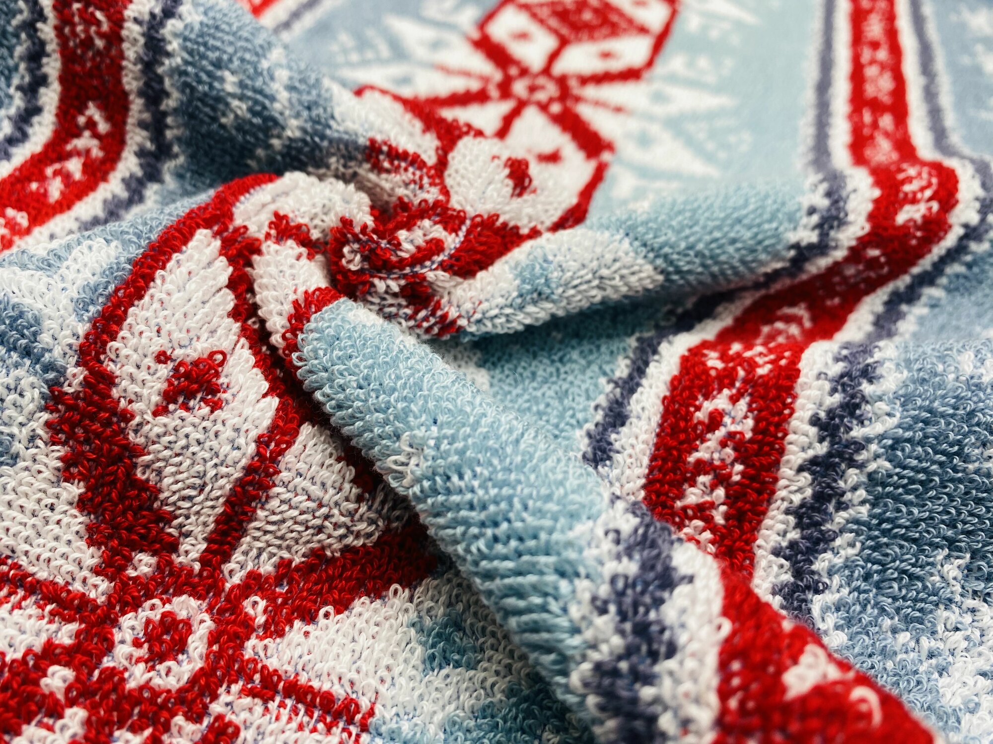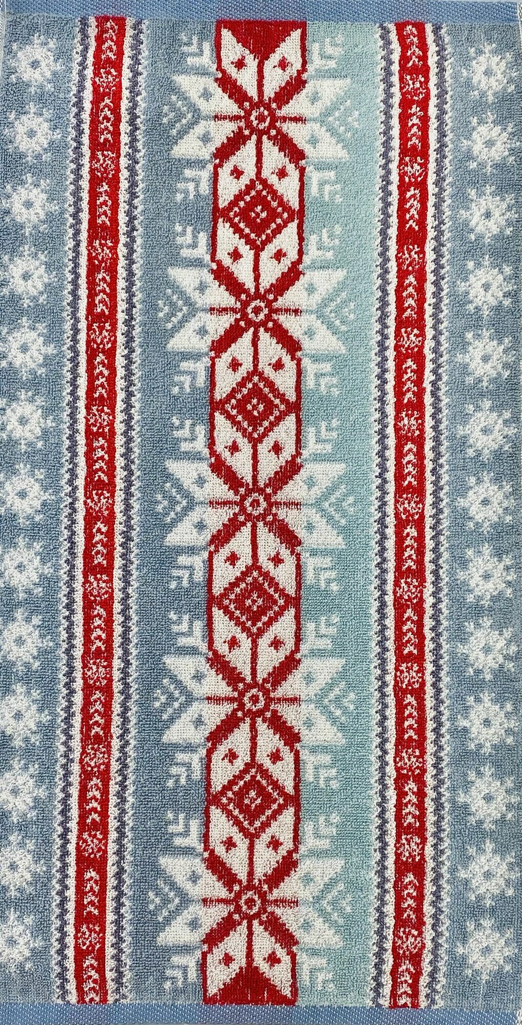 Полотенце махровое ручное, кухонное в подарок на Новый год, Рождество Новогодний орнамент Синее 70*40 см