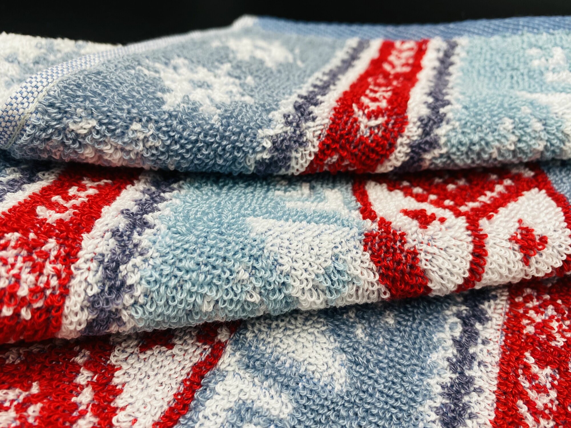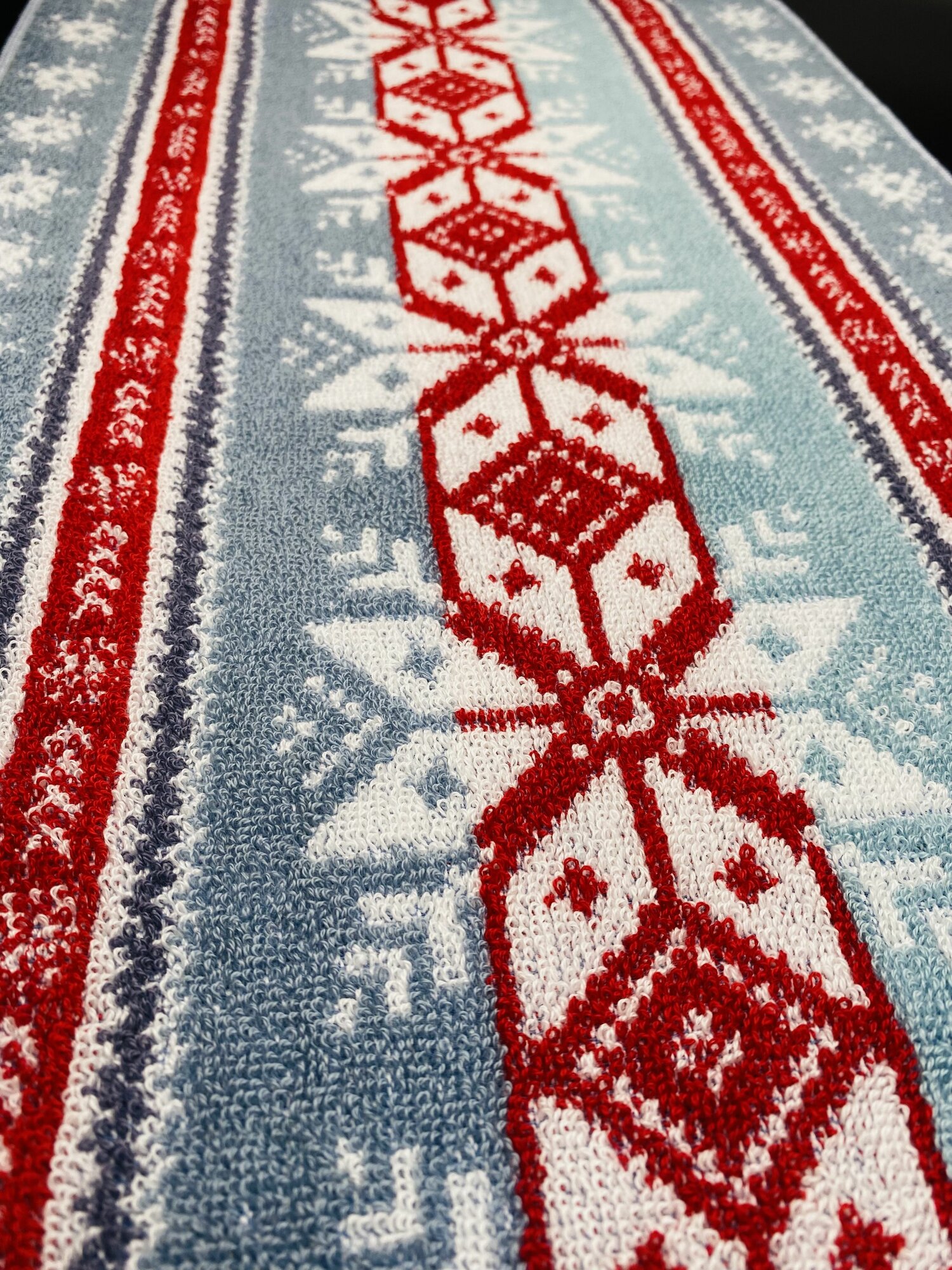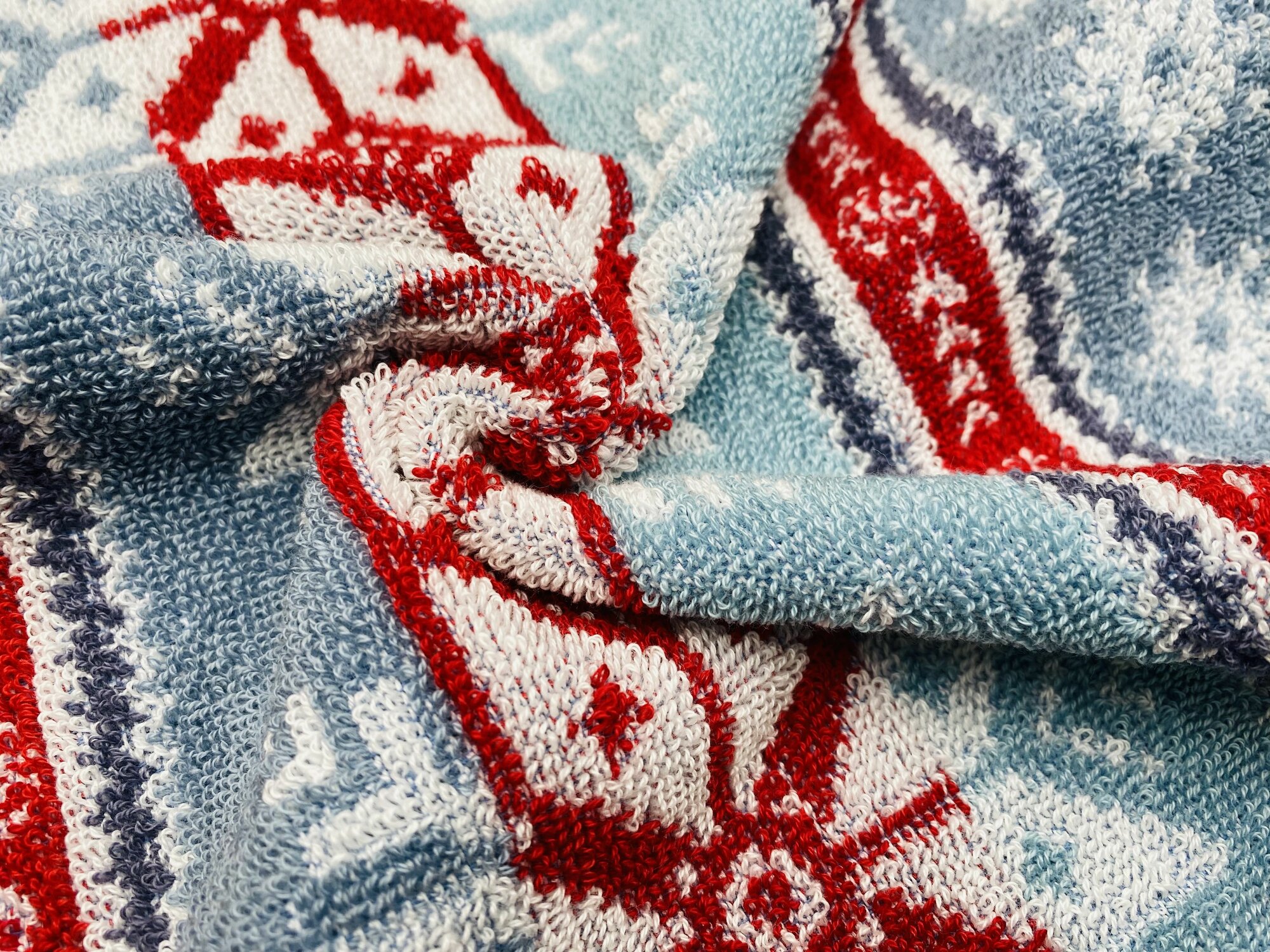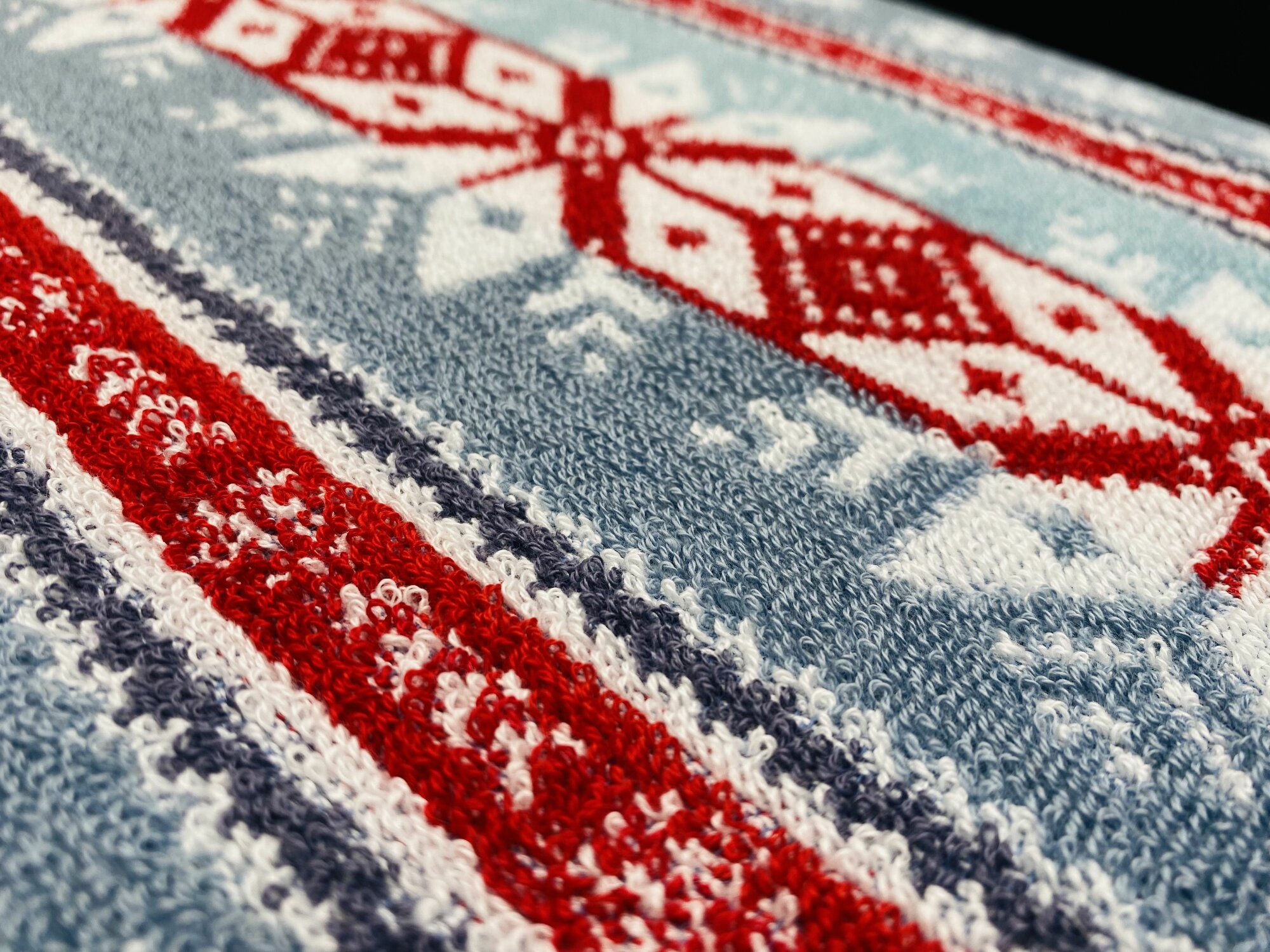 Полотенце махровое ручное, кухонное в подарок на Новый год, Рождество Новогодний орнамент Синее 70*40 см