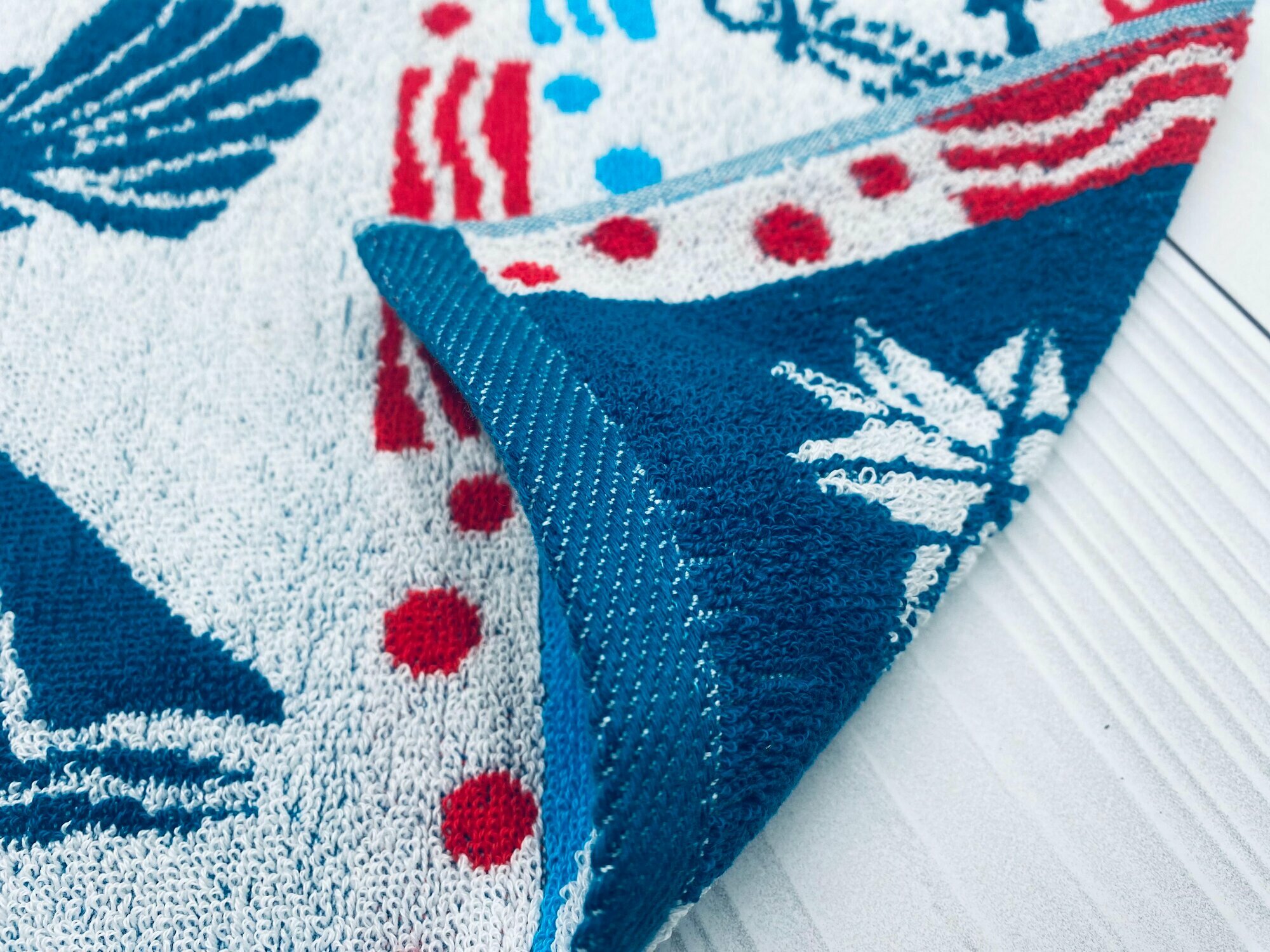 Купить Полотенце махровое кухонное, для рук и лица, ручное в подарок Моряку, Морпеху "Морское" двухстороннее 30*60 см