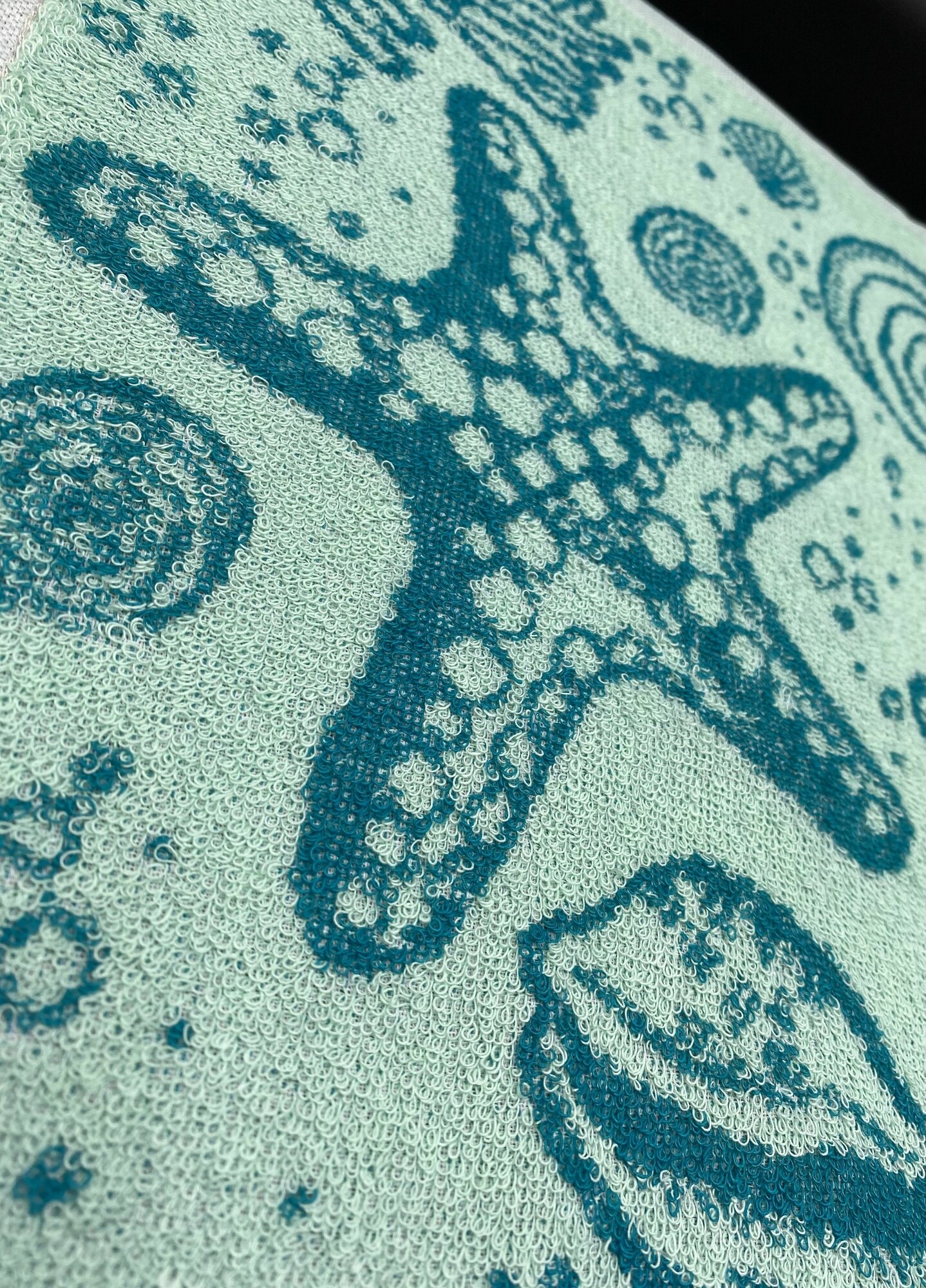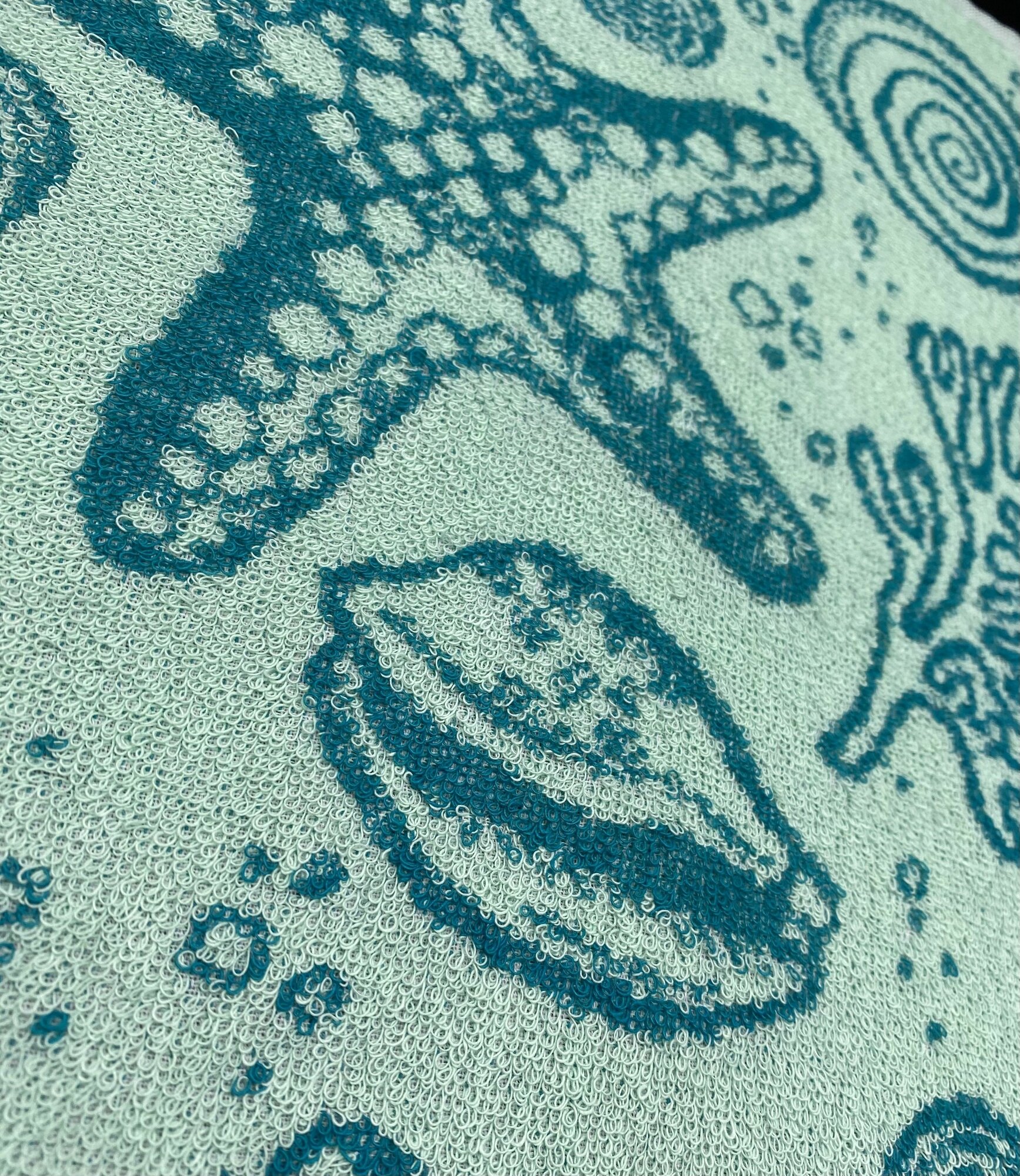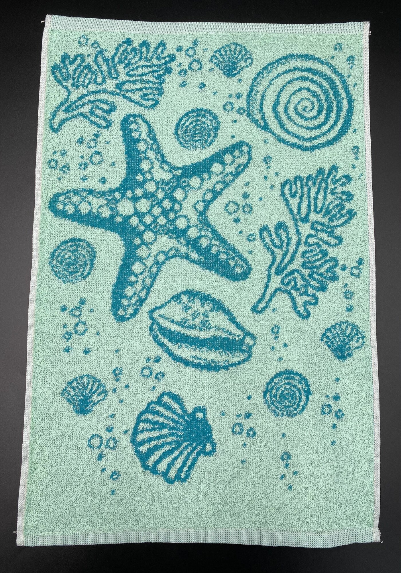 СохранитьПолотенце махровое ручное, кухонное для рук, для посуды Морское дно зеленое 30*50 см интересное: