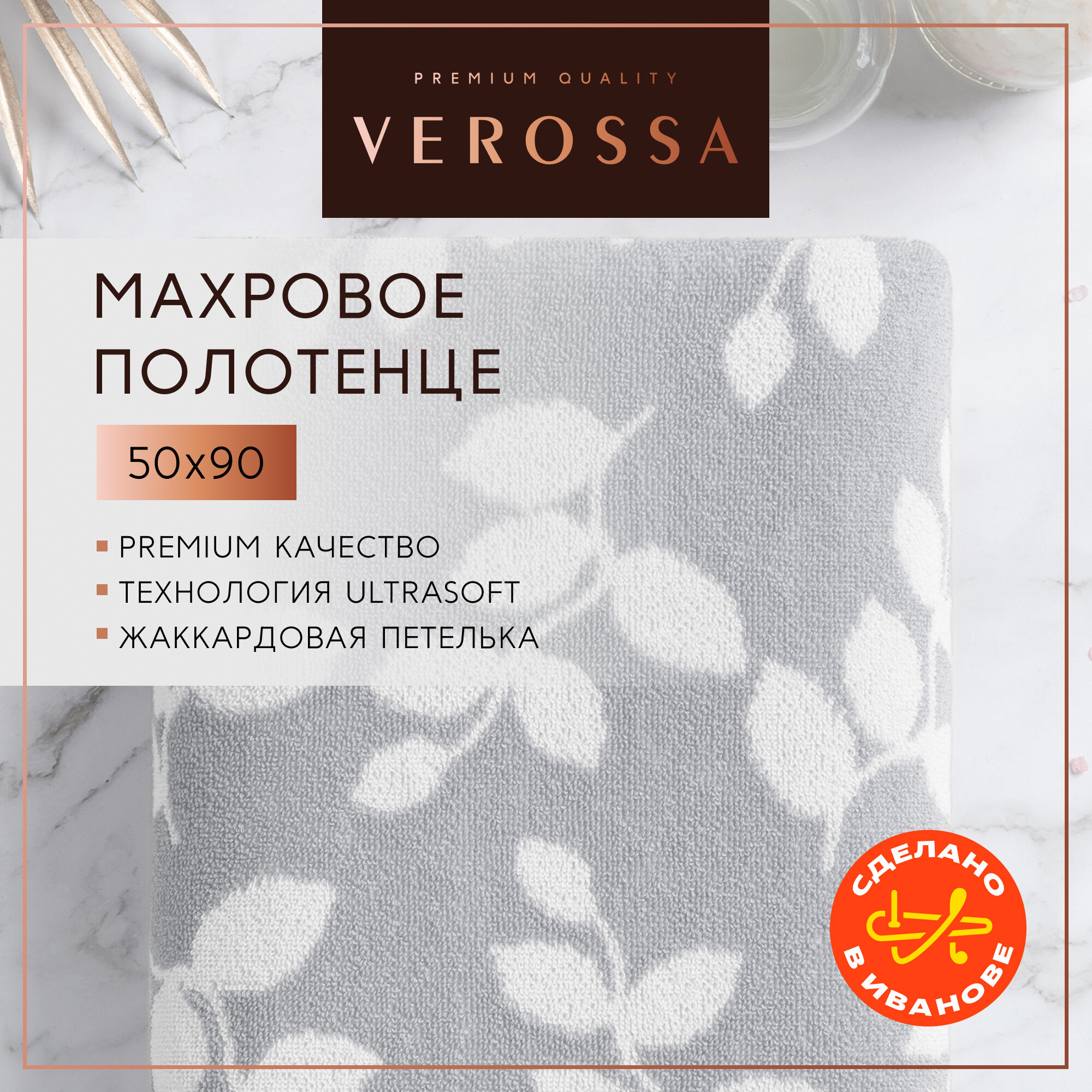 Полотенце банное махровое 50х90 см Verossa - 1 шт, хлопок 100% интересное: