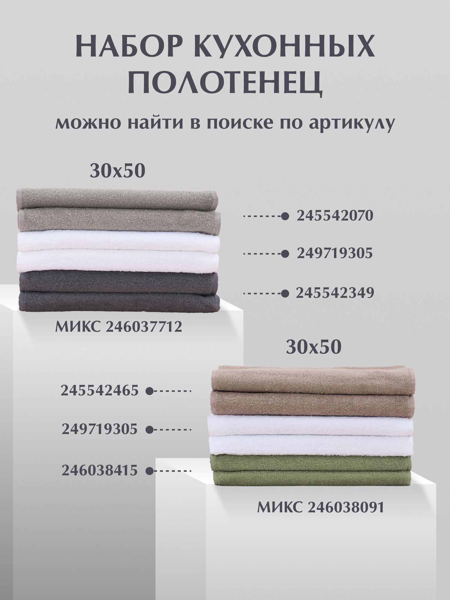 Махровые кухонные полотенца Odella, 30×50 см, серые, хлопок 100%, набор 5 шт