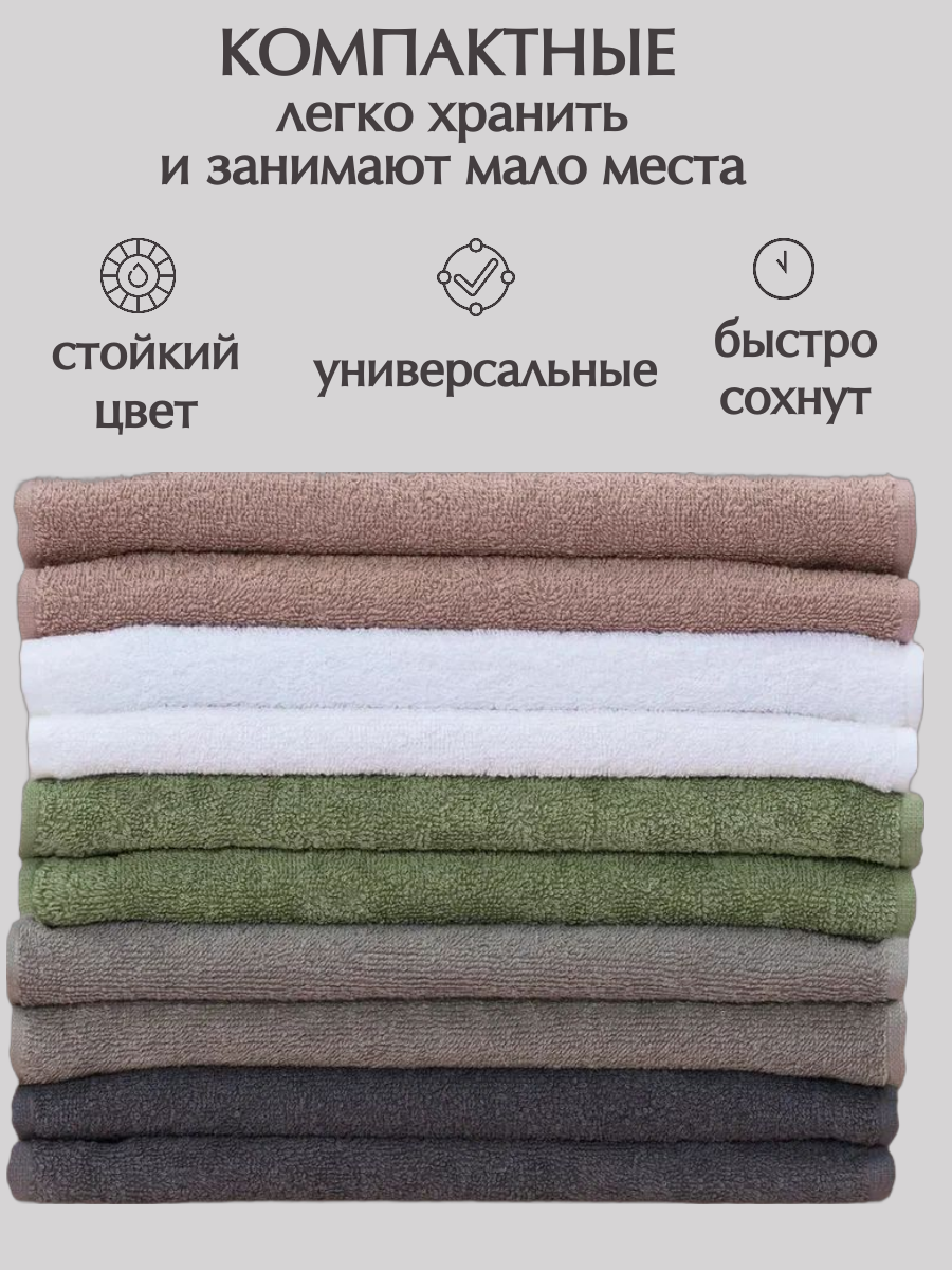 Махровые кухонные полотенца Odella, 30×30 см, оливковые, хлопок 100%, набор 10шт