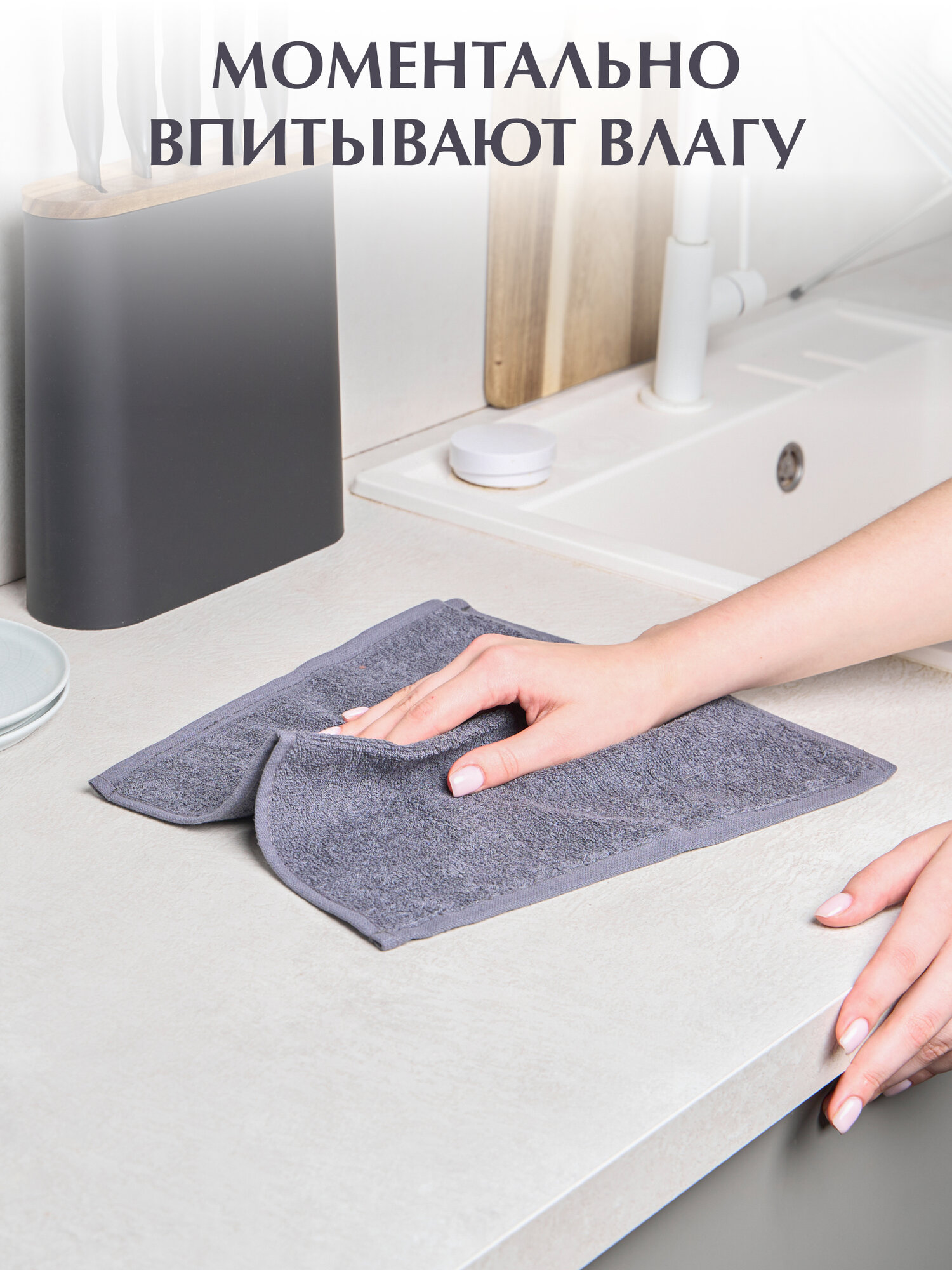 Махровые кухонные полотенца Odella, 30×30 см, серые, хлопок 100%, набор 10шт