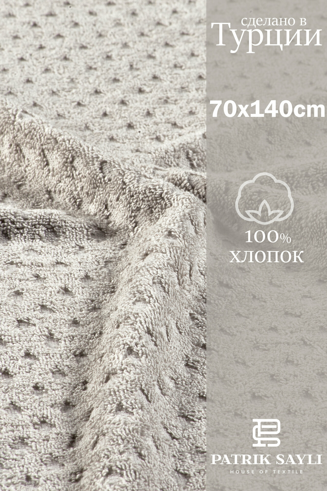 Купить Полотенца банные махровые PATRIK SAYLI, 70 х 140 , Турция серый