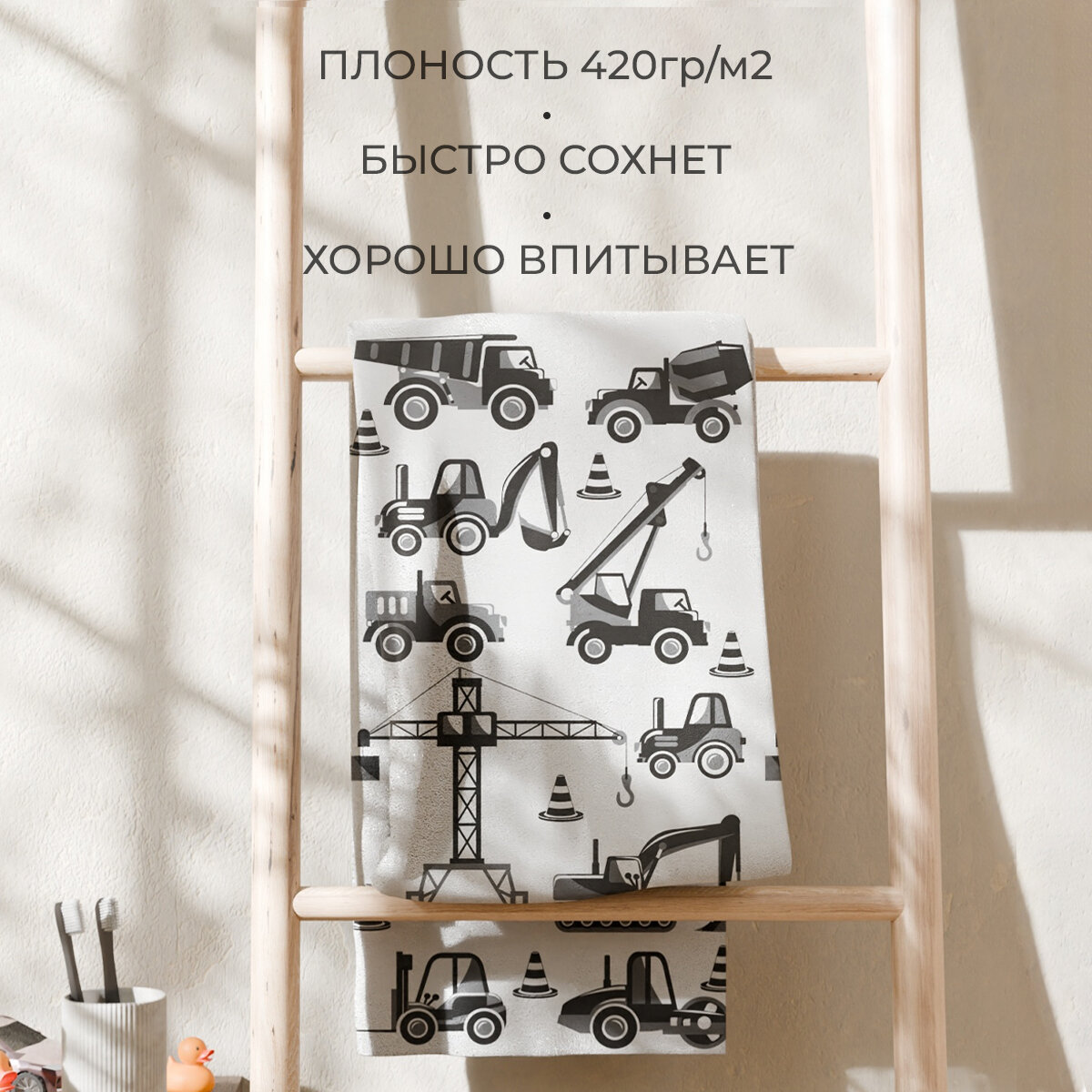 Полотенце махровое Этель "Транспорт", 70х130 см, 100% хлопок, 420гр/м2 интересное: