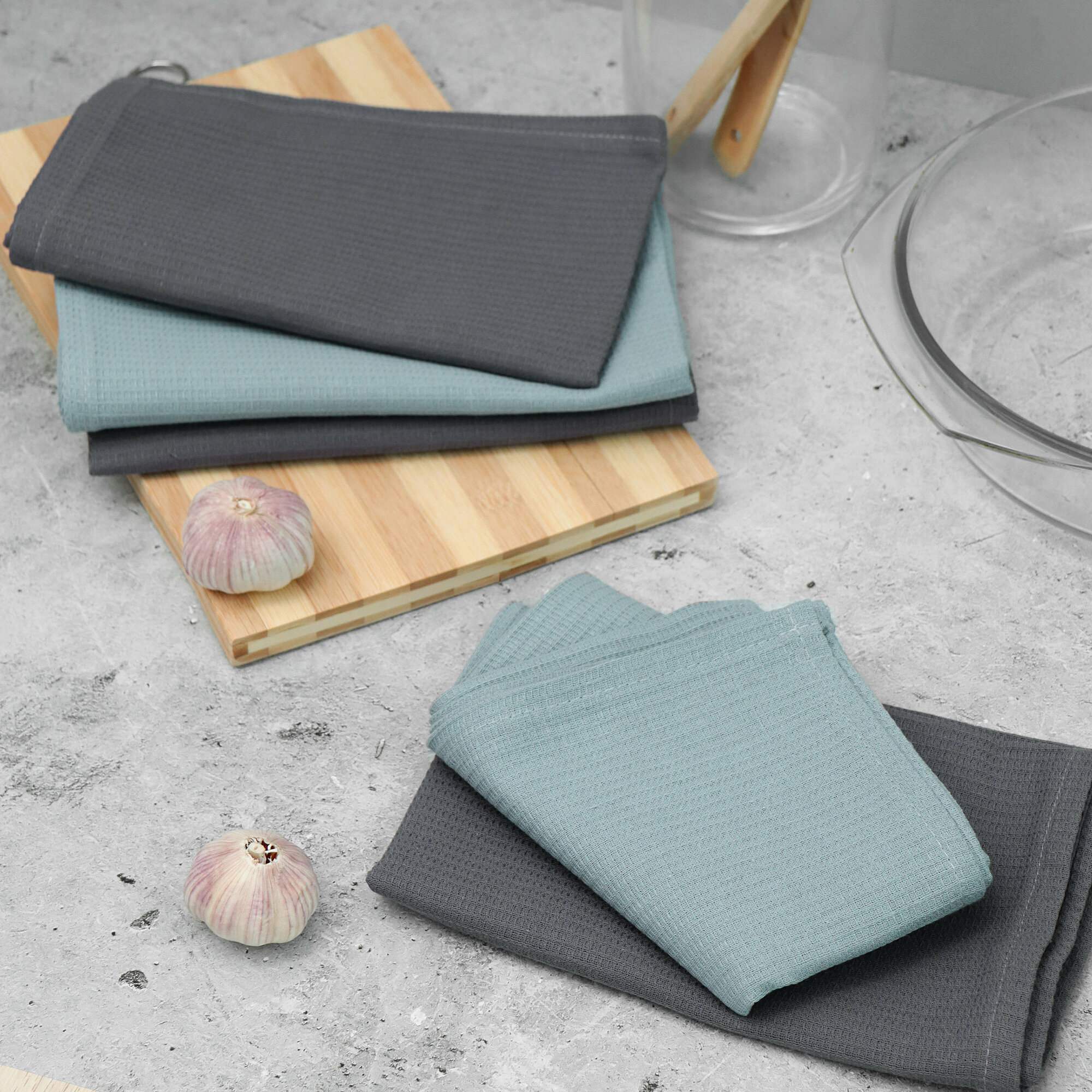Купить Набор кухонных полотенец OKSMILE "Вафельные", 100% хлопок, 5 шт