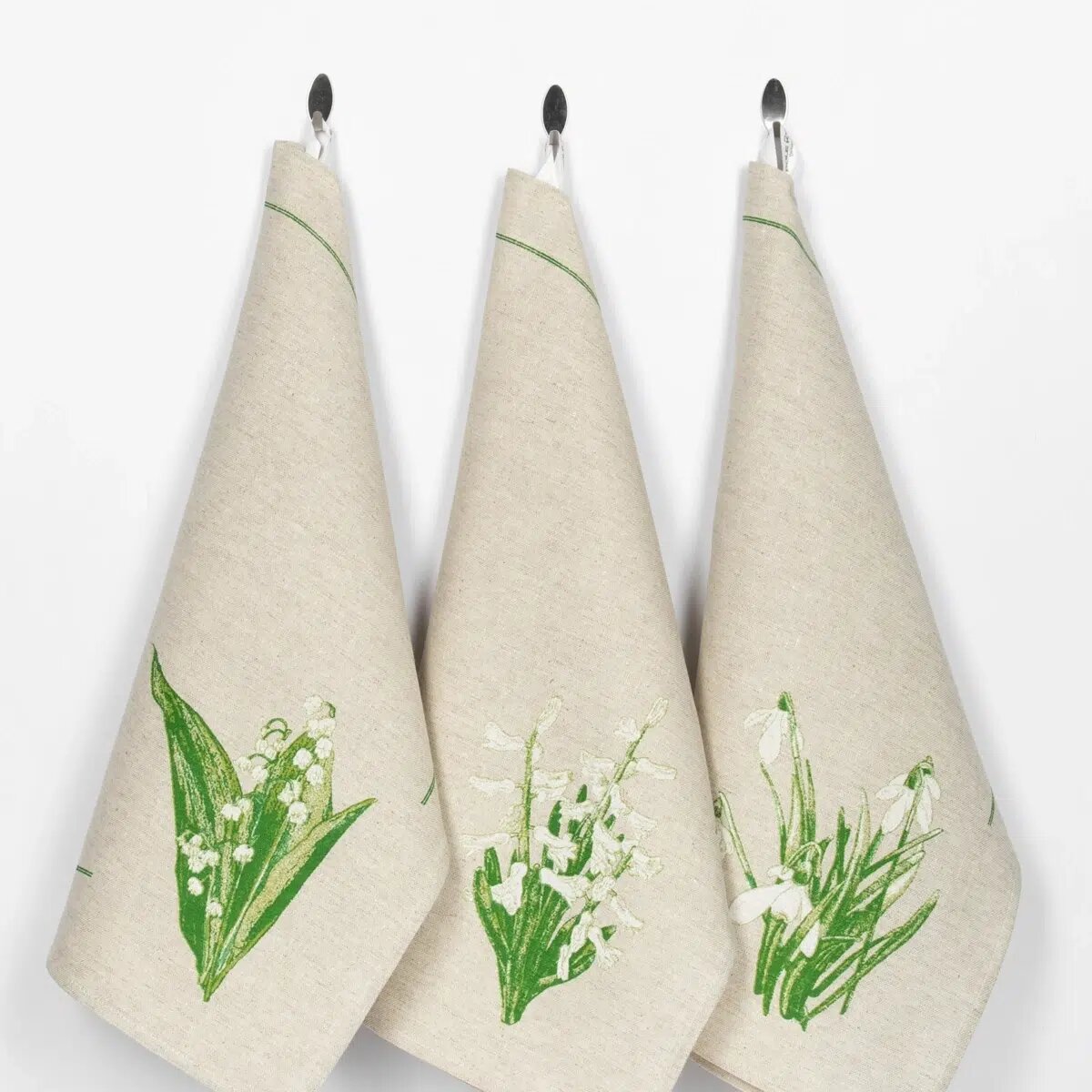 Купить Набор льняных кухонных полотенец Белые цветы 3шт, полотенца 46х60