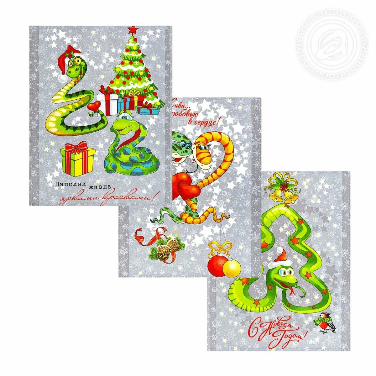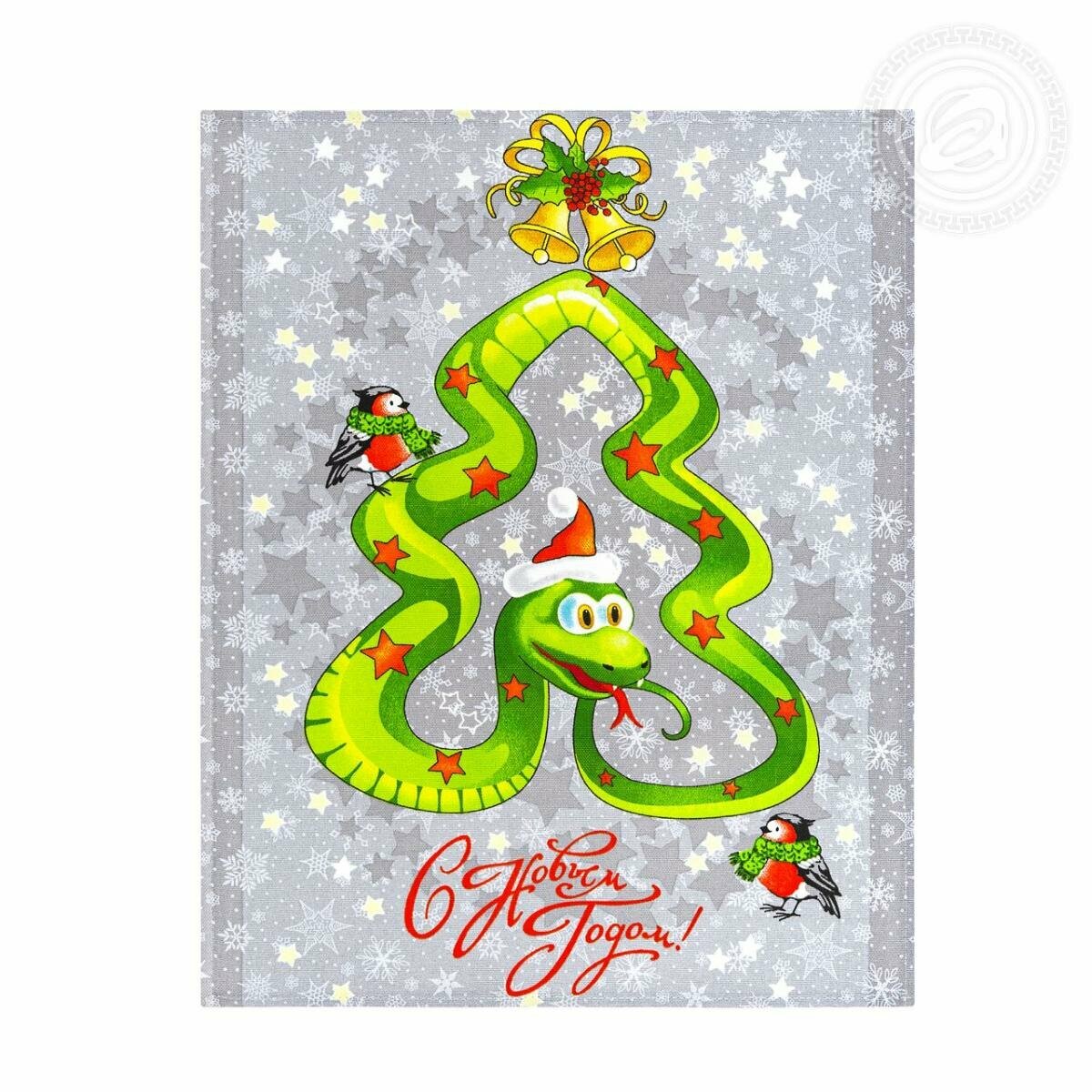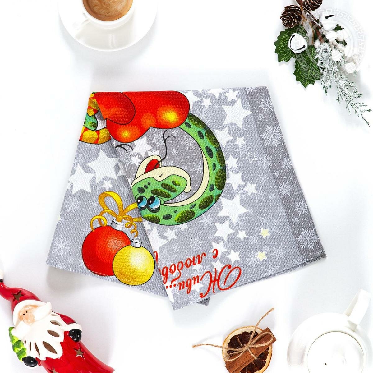Набор кухонных полотенец «Подарки» - рогожка (3шт - 45*60см), АртПостель, змейка, новый год 2025, символ года