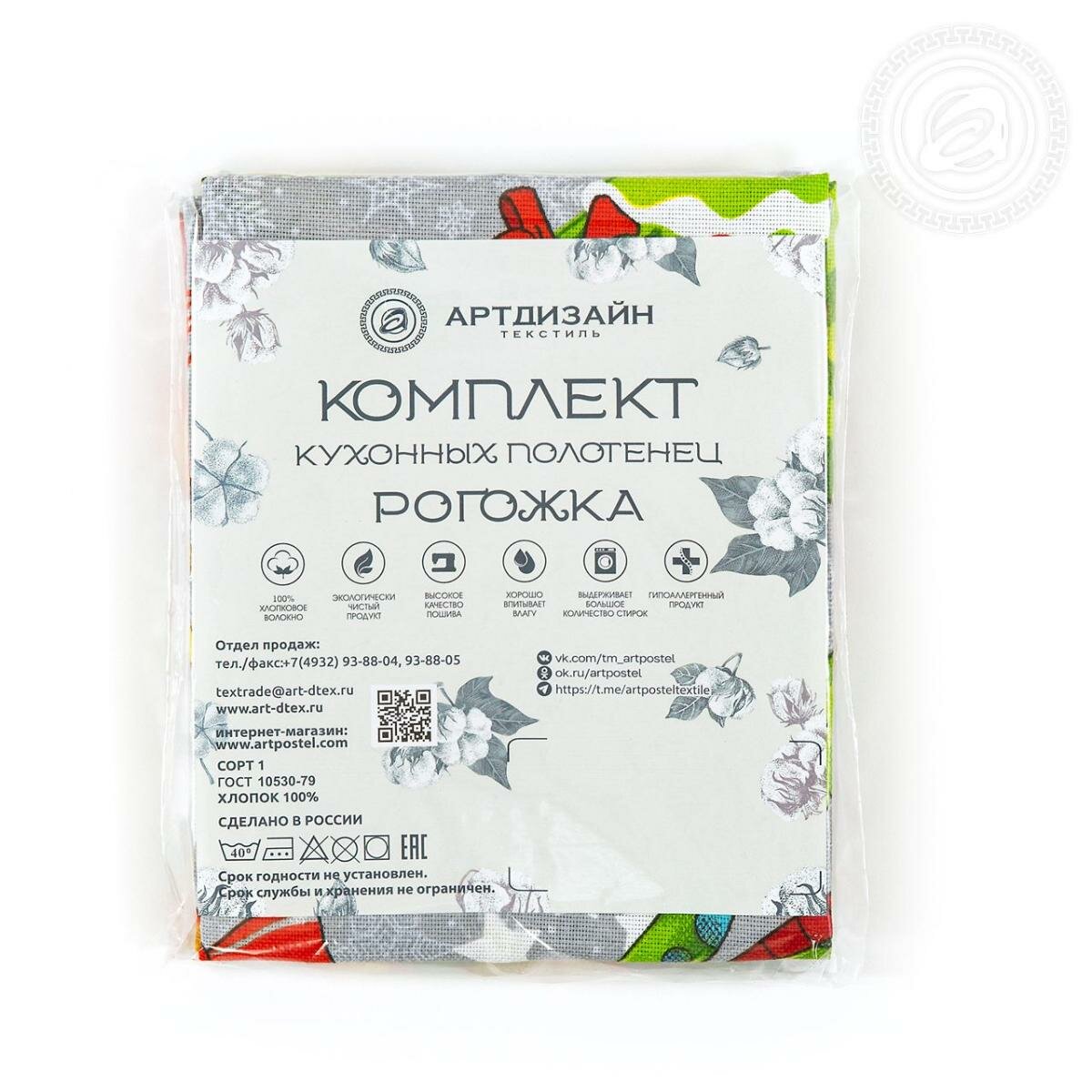 Набор кухонных полотенец «Роспись» - рогожка (3шт - 45*60см), АртПостель, городецкая роспись, цветы, 8 марта