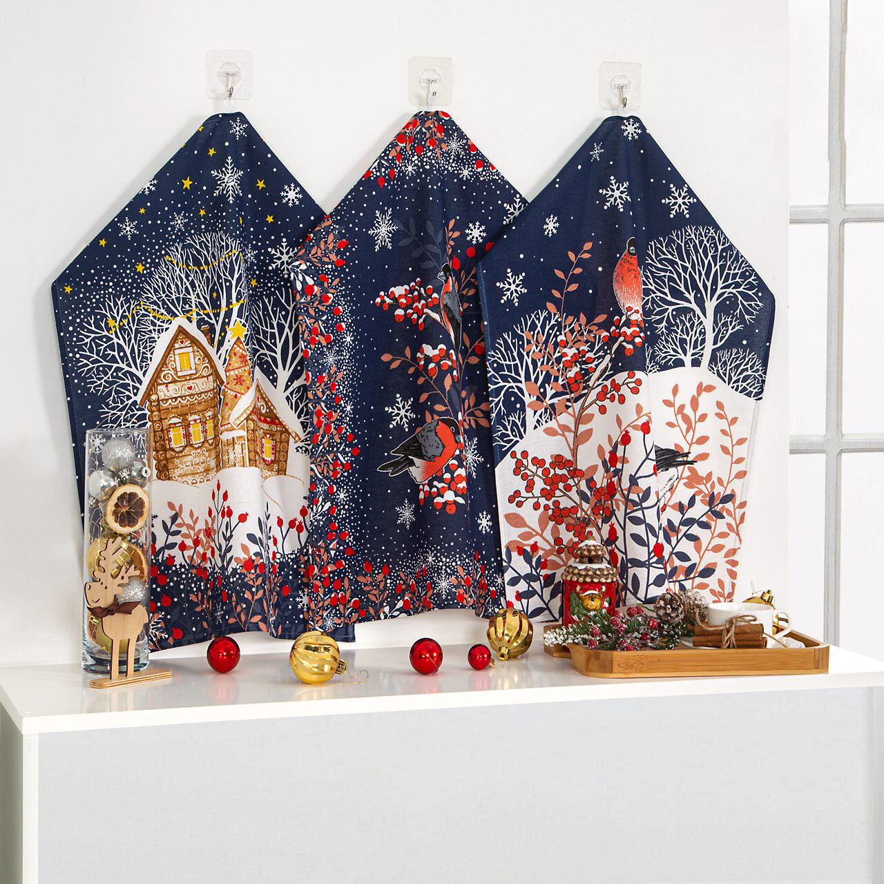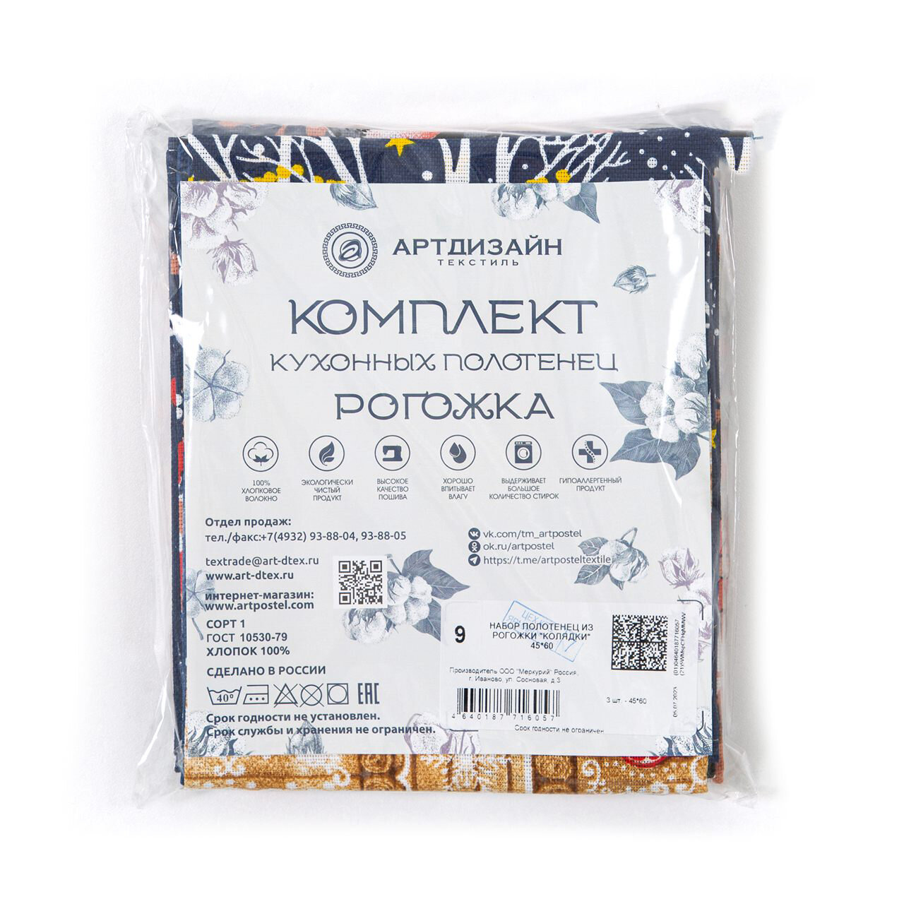 Купить Набор кухонных полотенец «Колядки» - рогожка (3шт - 45*60см), АртПостель, зима, новый год 2025