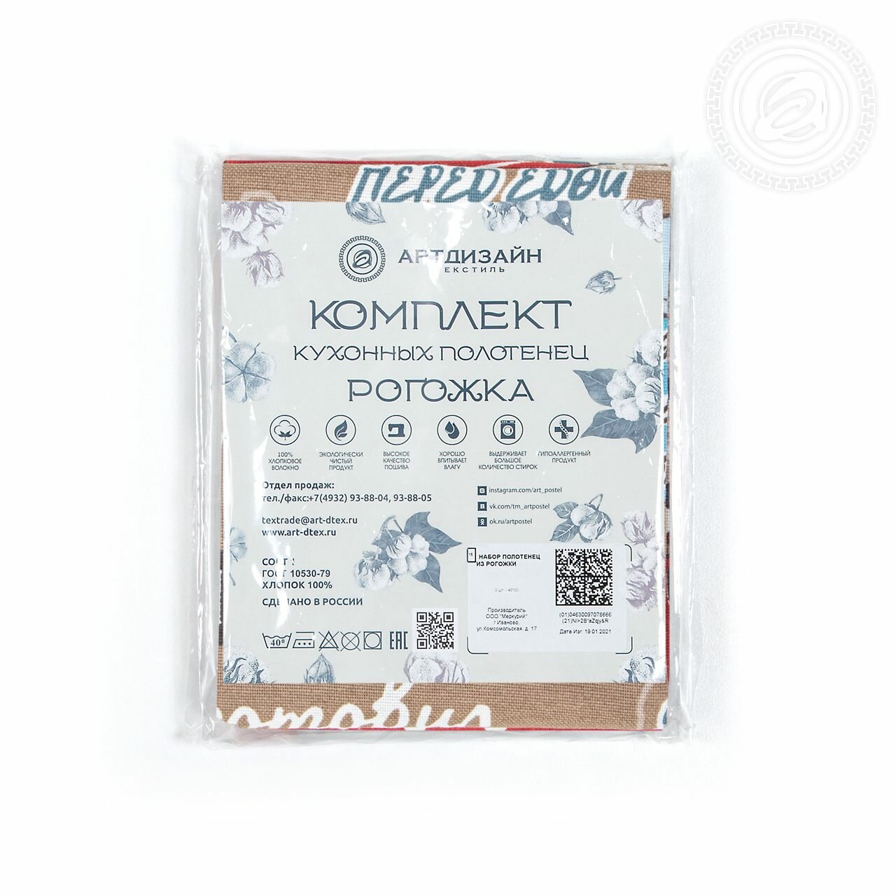 Набор кухонных полотенец/рогожка/полотенце кухонное/45х60/3 штуки/Арт Постель/почудим