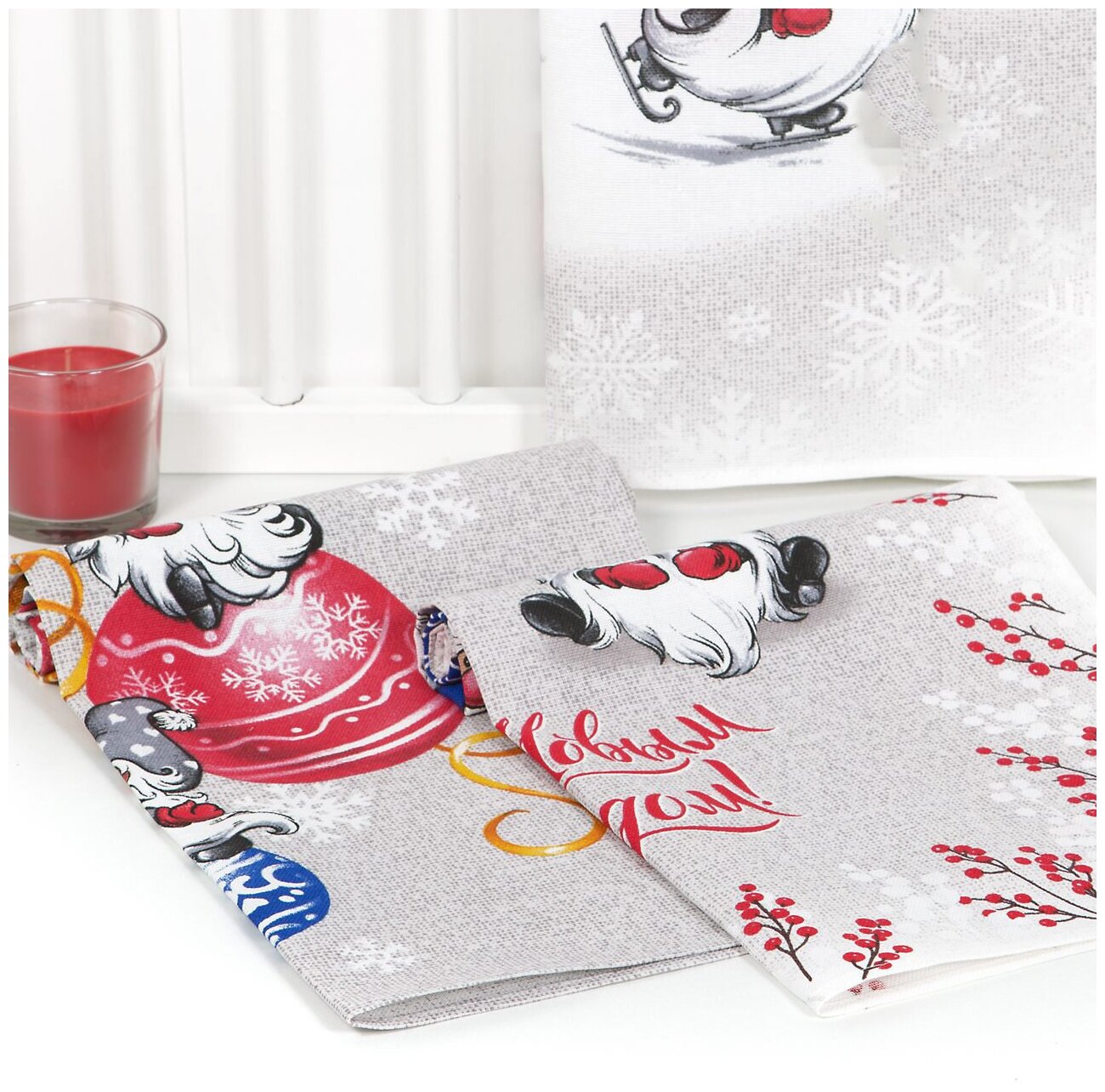 Купить Набор кухонных полотенец «Гномики» - рогожка (3шт - 45*60см), АртПостель, новый год 2025, подарок