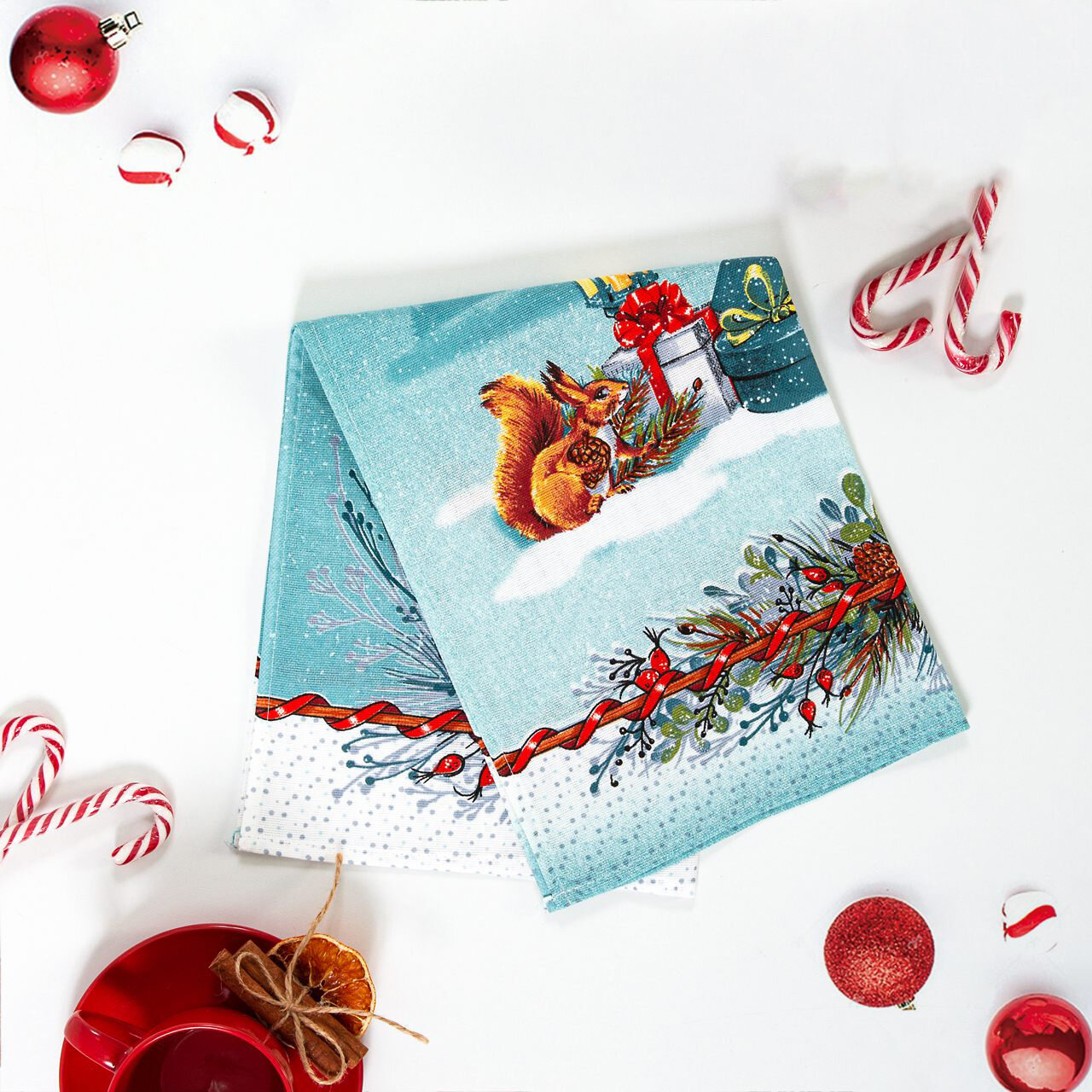 Набор кухонных полотенец «Серпантин» - рогожка (3шт - 45*60см), АртПостель, снегири, новый год 2025