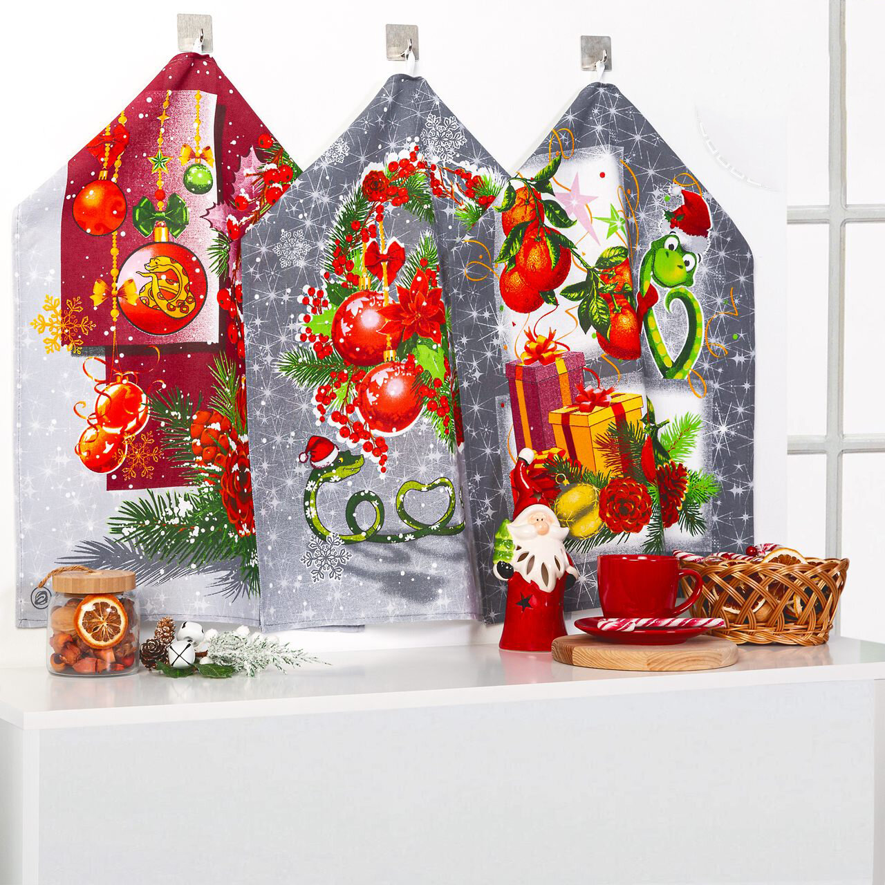 Купить Набор кухонных полотенец «Подарки» - рогожка (3шт - 45*60см), АртПостель, змейка, новый год 2025, символ года
