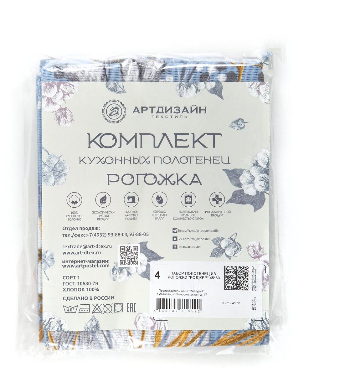 Набор кухонных полотенец/рогожка/полотенце кухонное/45х60/3 штуки/Арт Постель/почудим