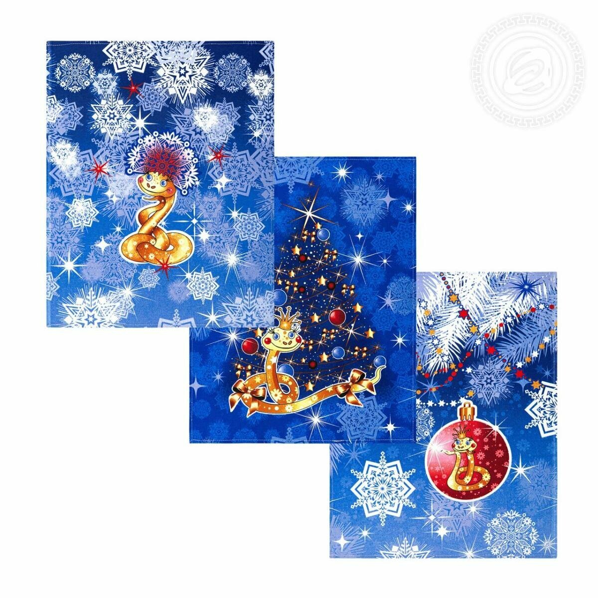 Набор кухонных полотенец «Подарки» - рогожка (3шт - 45*60см), АртПостель, змейка, новый год 2025, символ года