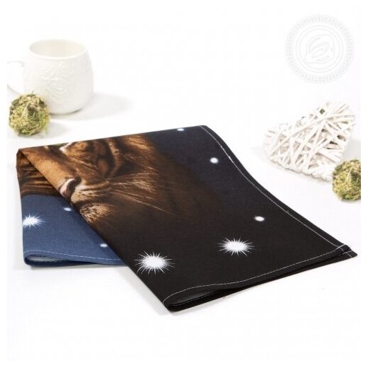 Набор кухонных полотенец «Тигран» - рогожка (3шт - 45*60см), АртПостель, тигр, в подарок, хлопок