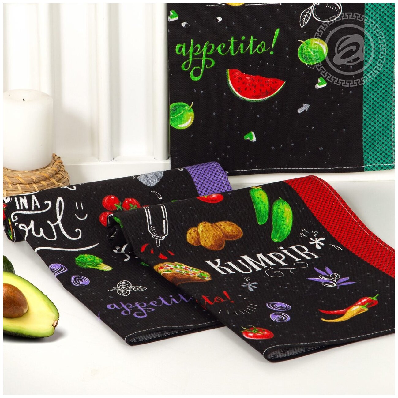 Набор кухонных полотенец/рогожка/полотенце кухонное/45х60/3 штуки/Арт Постель/маскарад