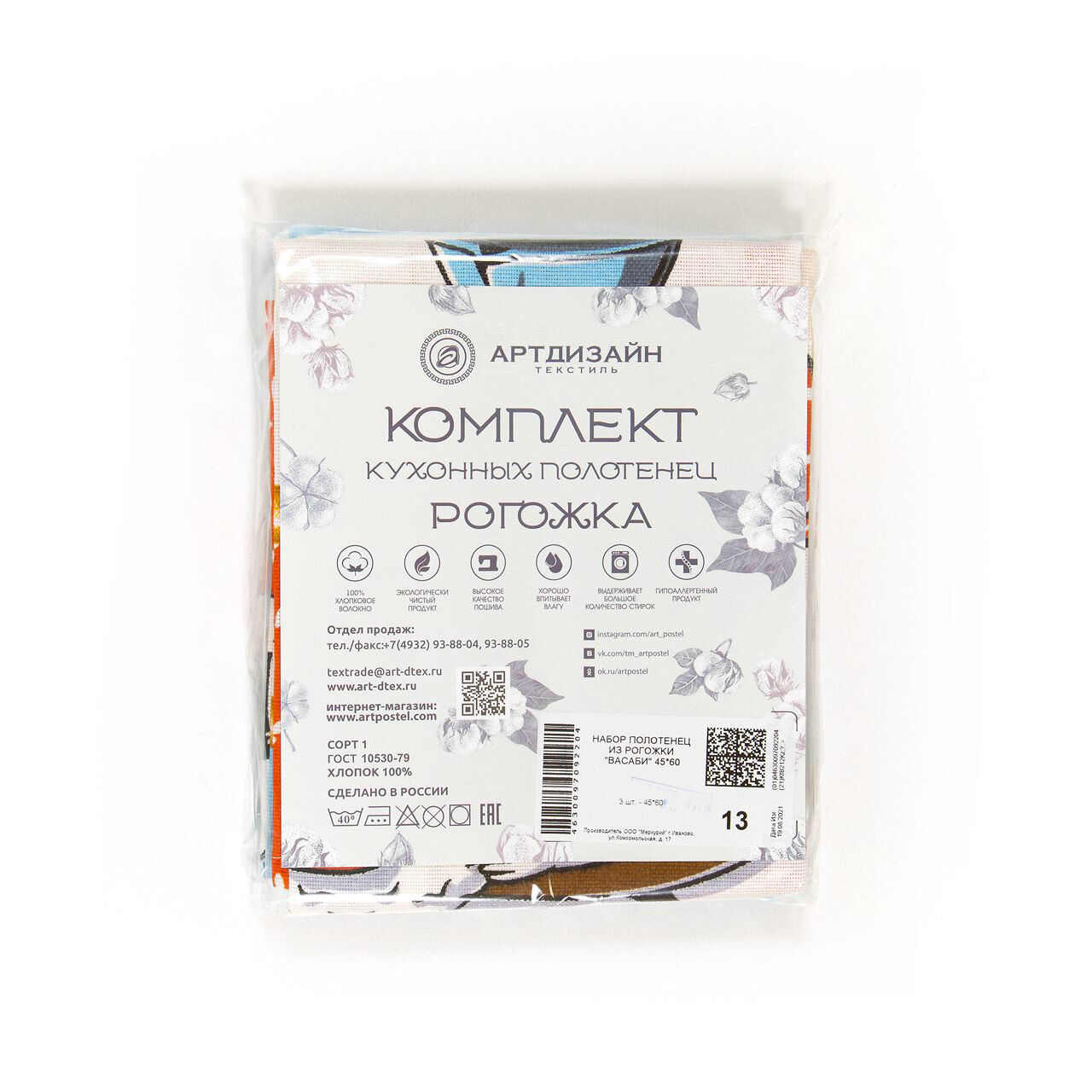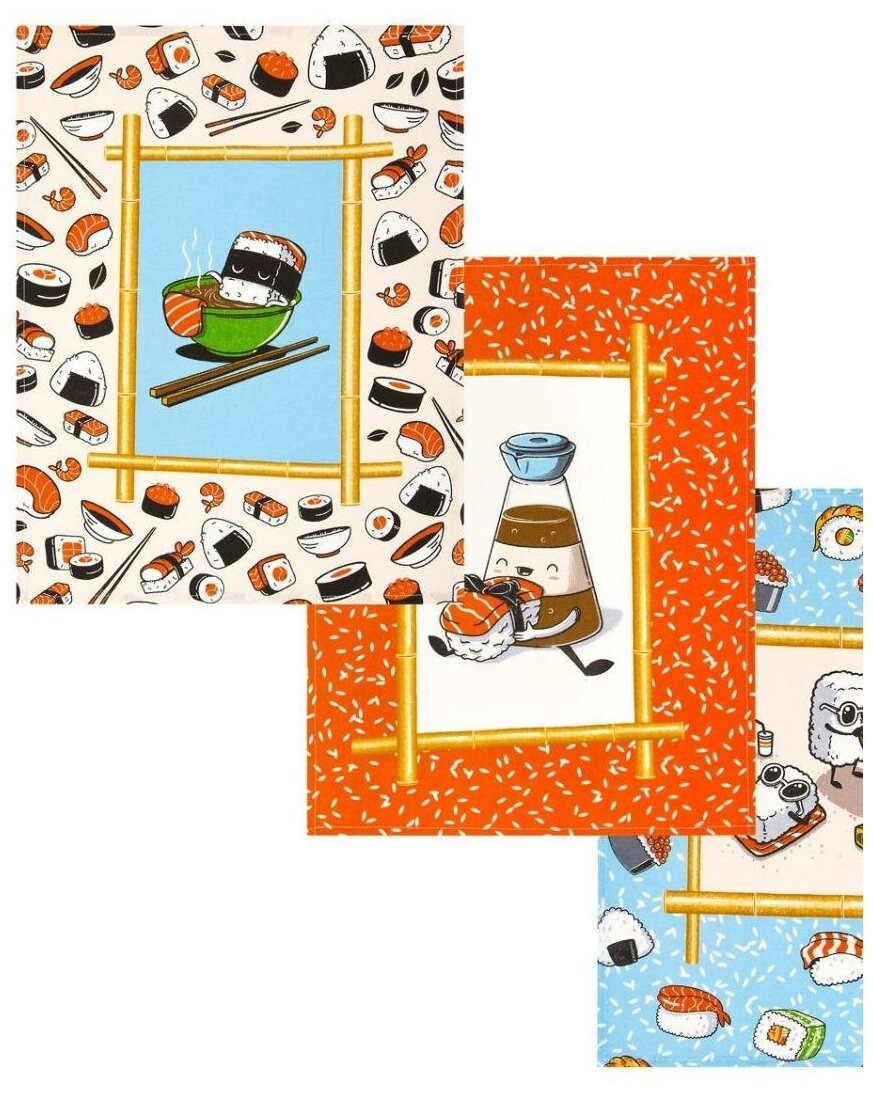 Купить Набор кухонных полотенец «Васаби» - рогожка (3шт - 45*60см), АртПостель, суши, роллы, хлопок