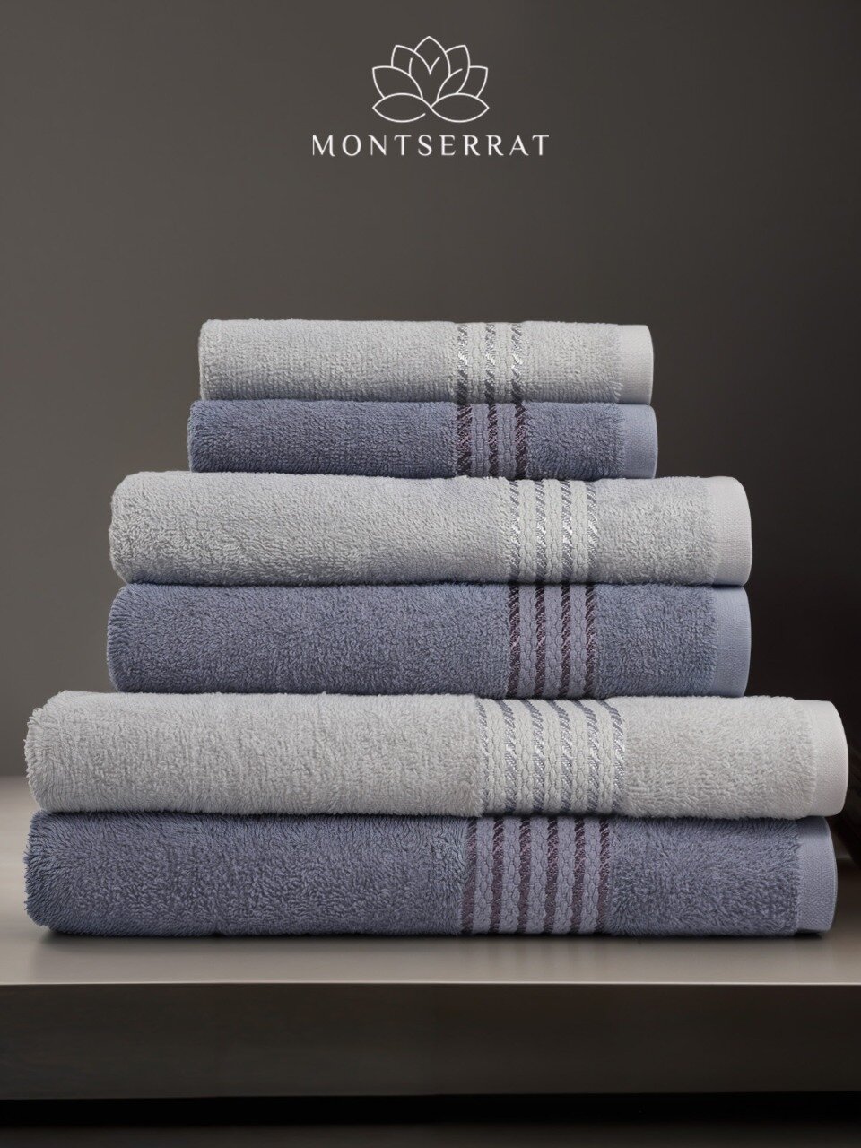 Купить Полотенце махровое банное MONTSSERAT для ванной и бани, набор из 6 штук, 2 шт по 50х80 - 70х130 - 30х60 см, впитывает влагу, серый и светло-серый