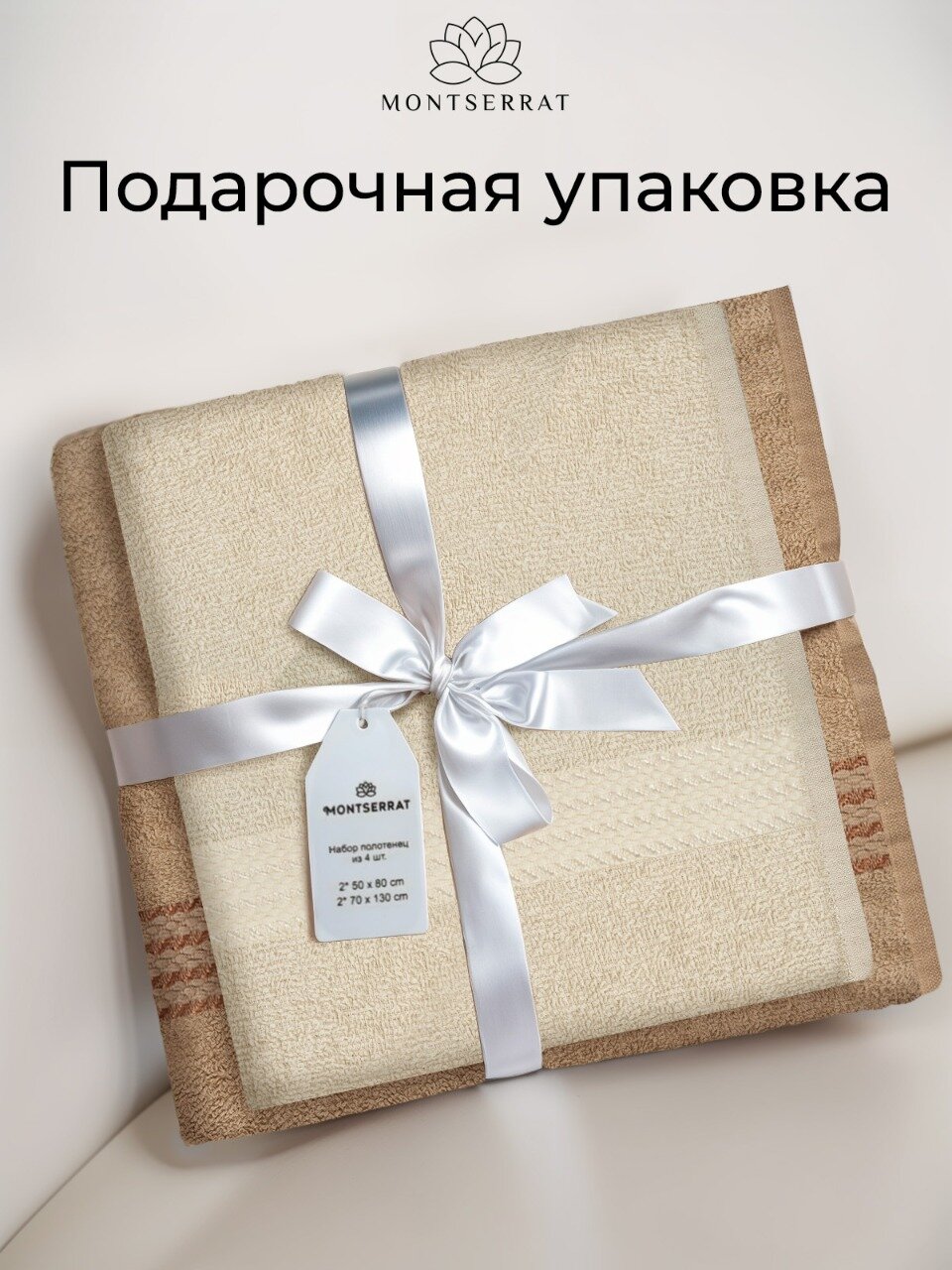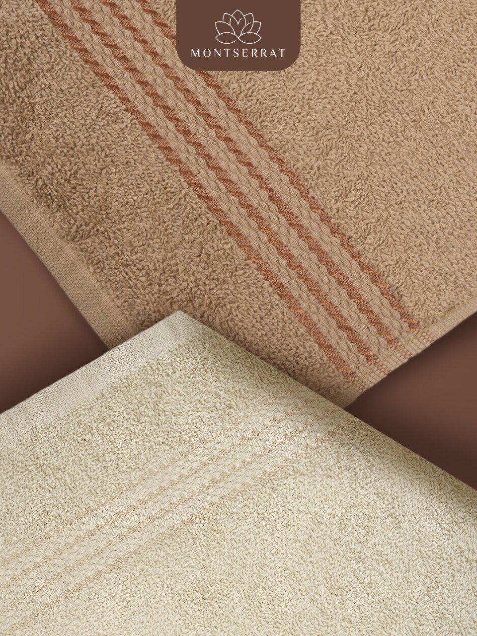 Полотенце махровое банное Montserrat комплект в ванную для лица, рук и тела, Набор 2 шт - 50х80 и 2 - 70х130 см, бежевые