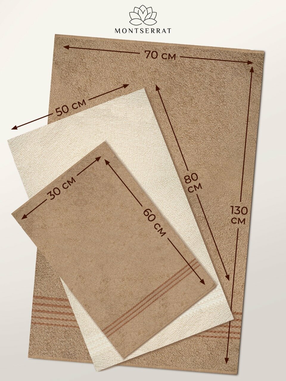 СохранитьПолотенце махровое банное MONTSSERAT для ванной и бани, набор из 6 штук светло-коричневый и бежевый, 100% хлопок интересное: